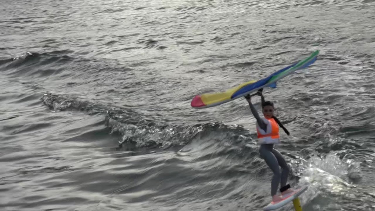 Paul had a tiny waterproof camera on the end of a stick which he deployed as well as driving the rescue boat, I was sat up front operating my rib with Katerina in tow. I would come past us as close as I could and as slow, but still keeping Katerina up on her foil.