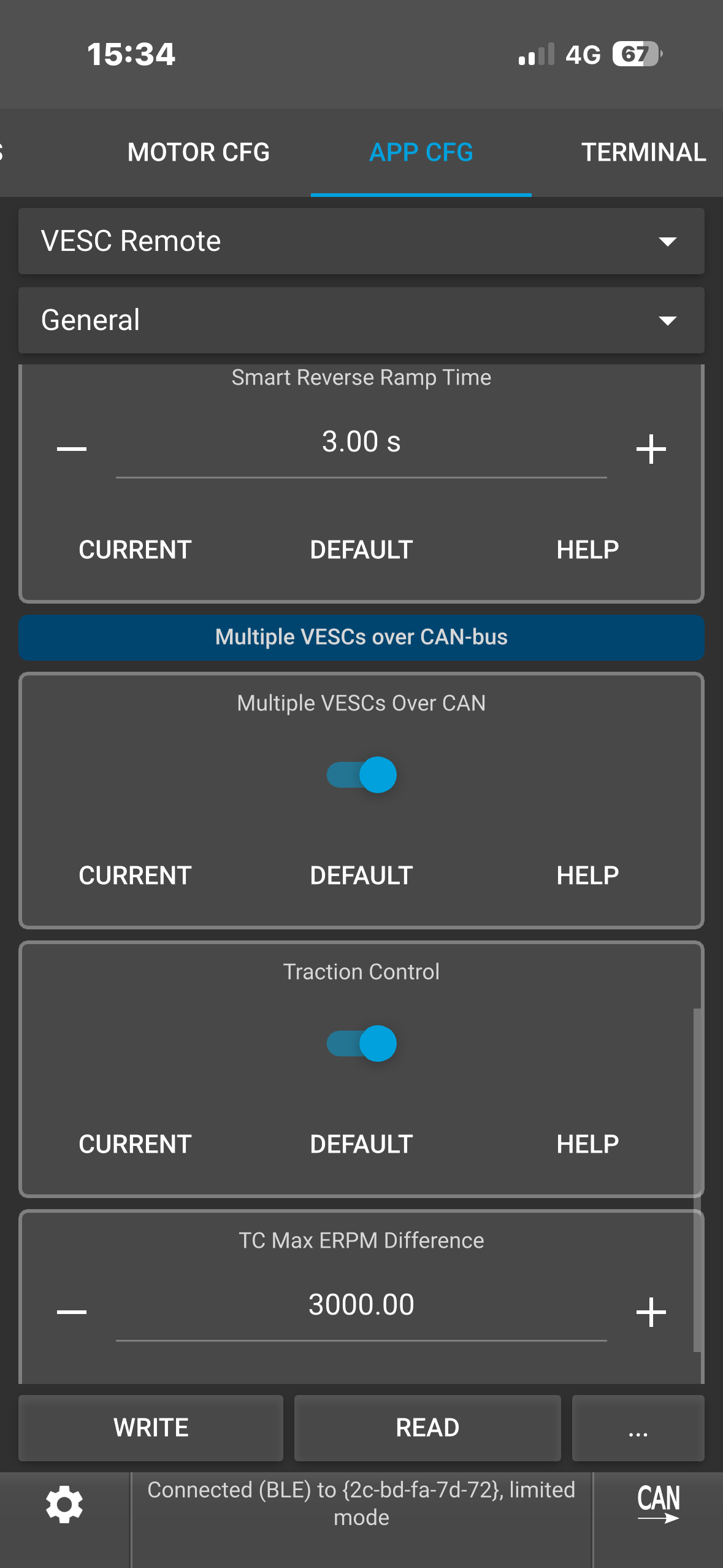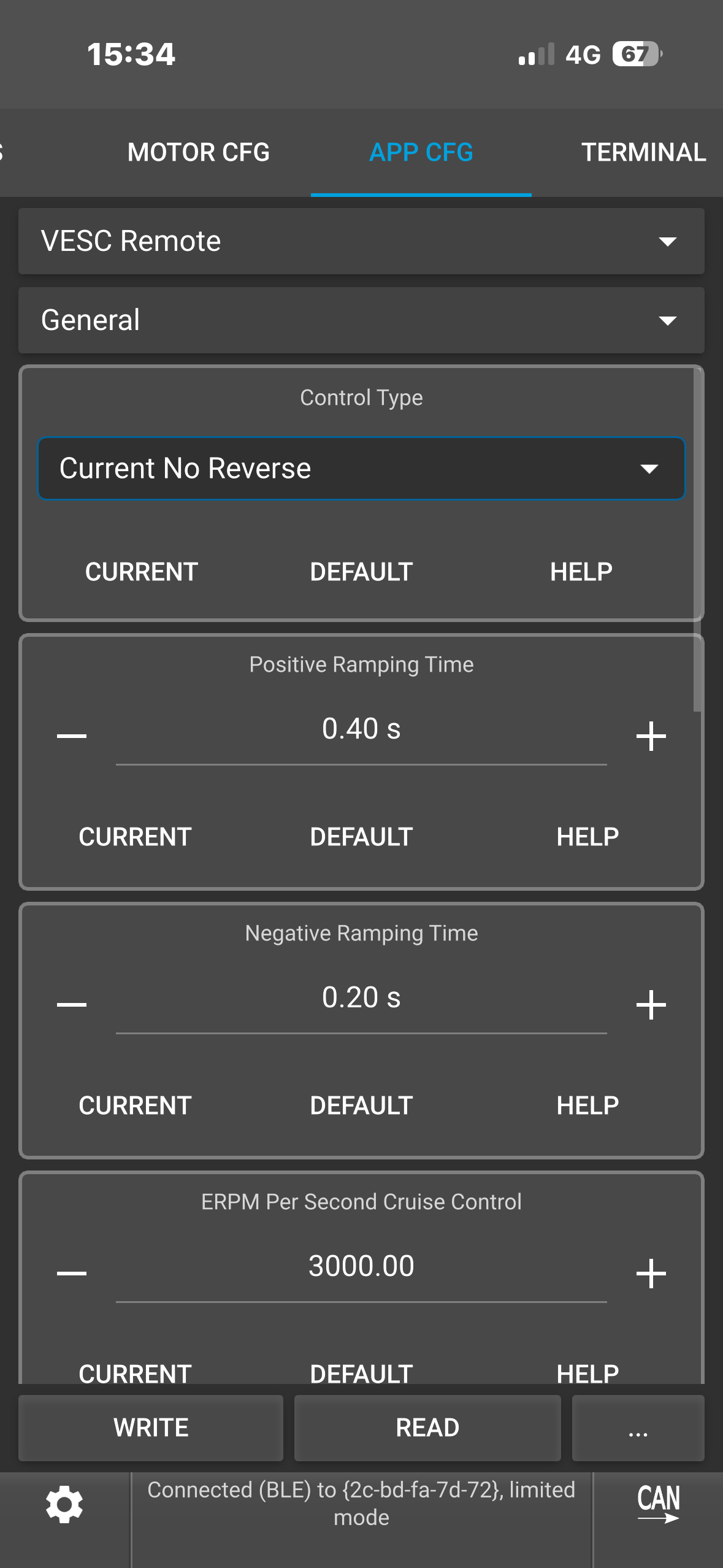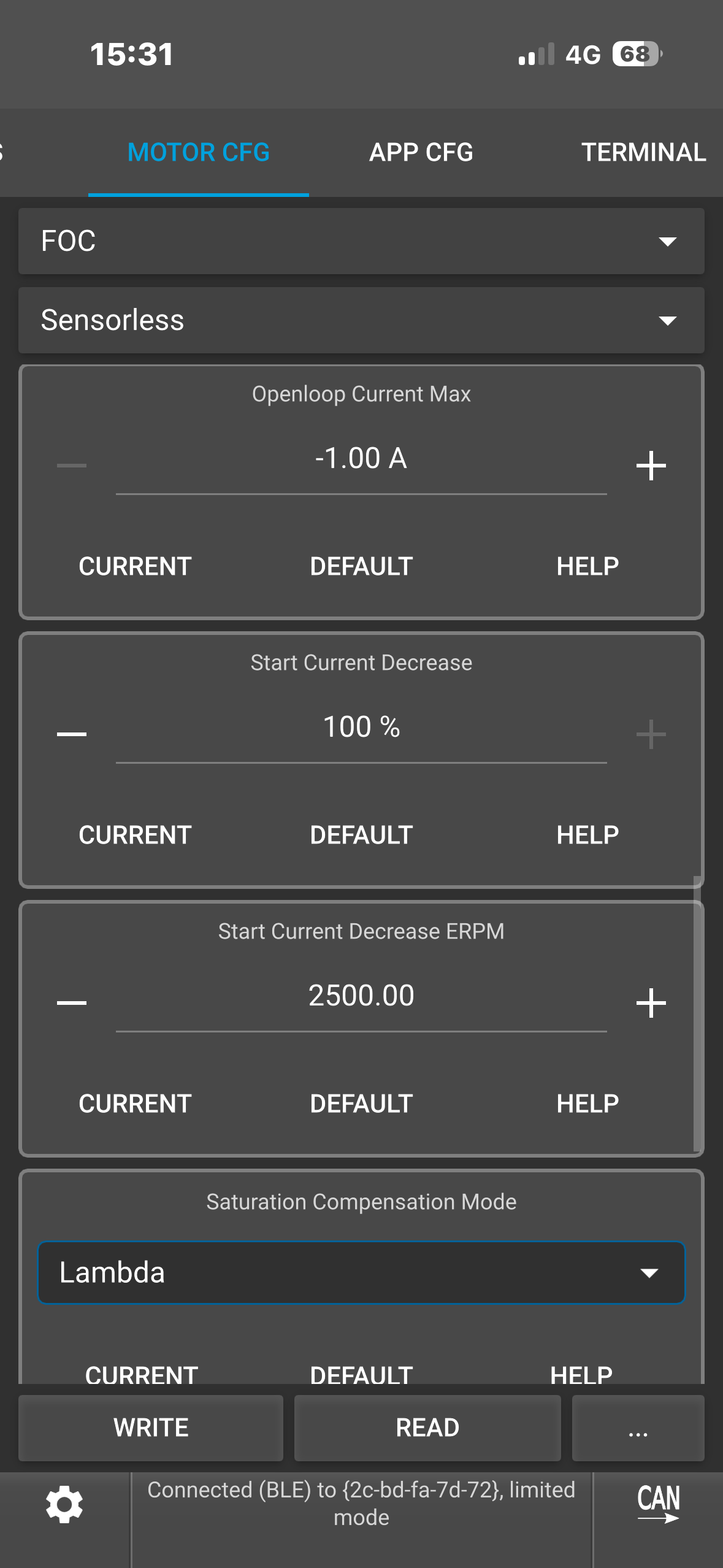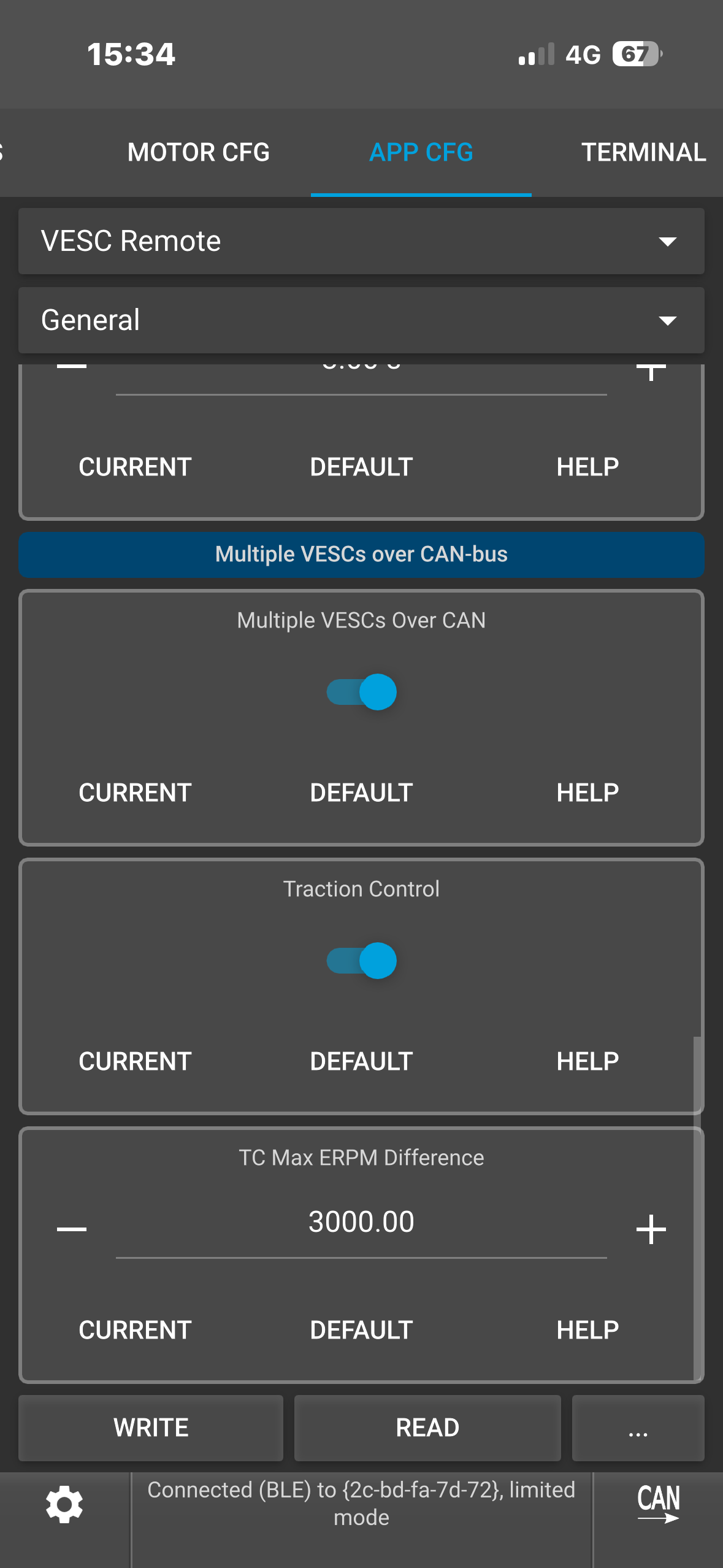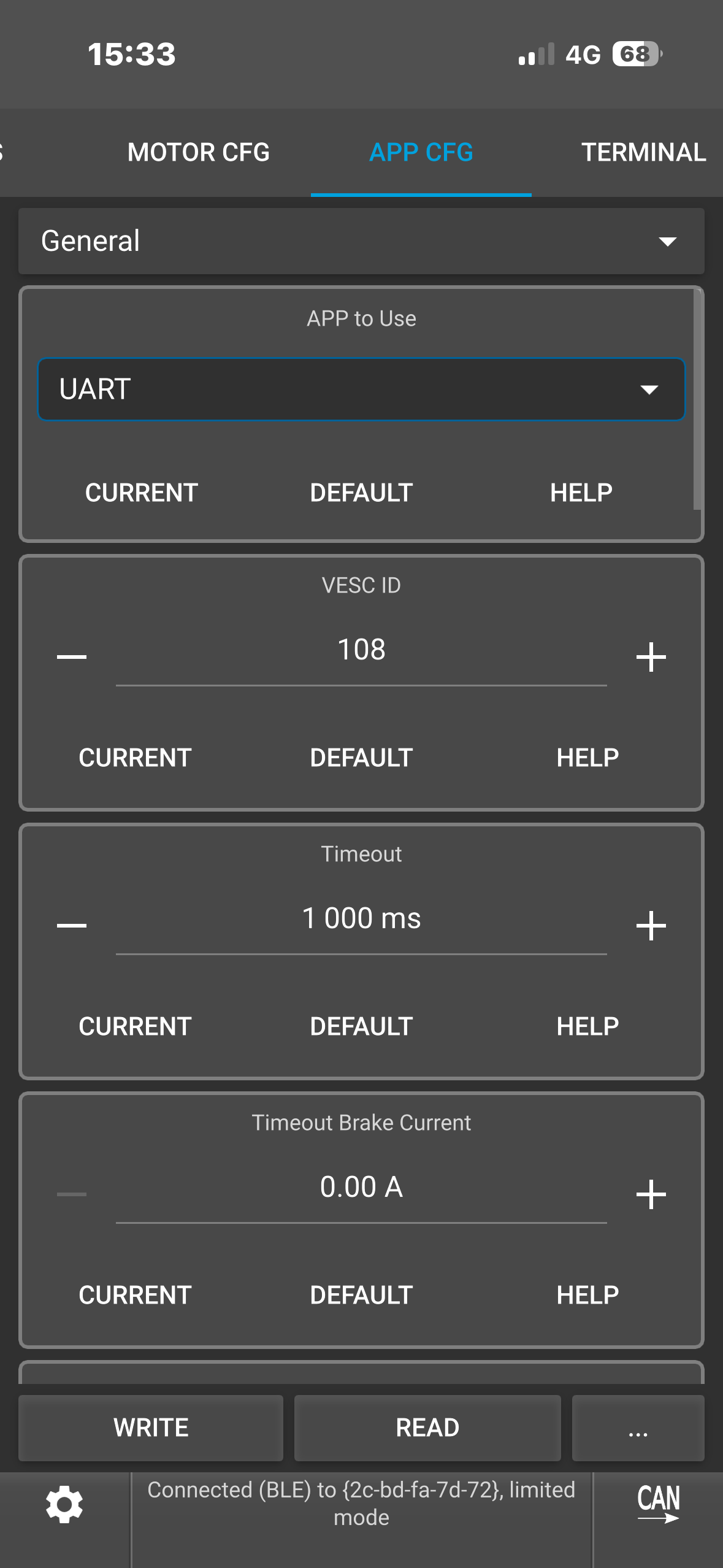 (Note: To see the ACTUAL current it’s tripping at, type “faults” in the VESC terminal while it’s connected. This would show you the fault info which you could screenshot.)