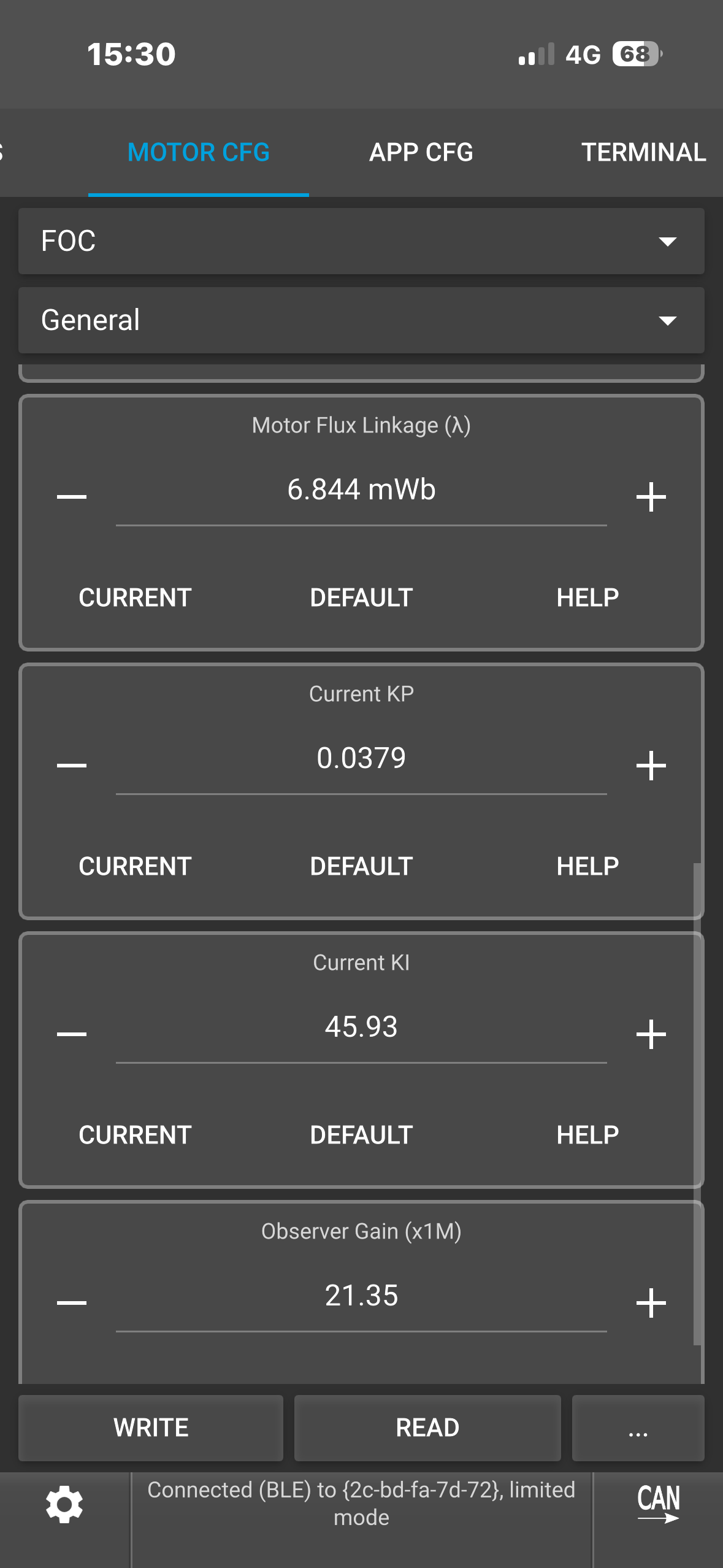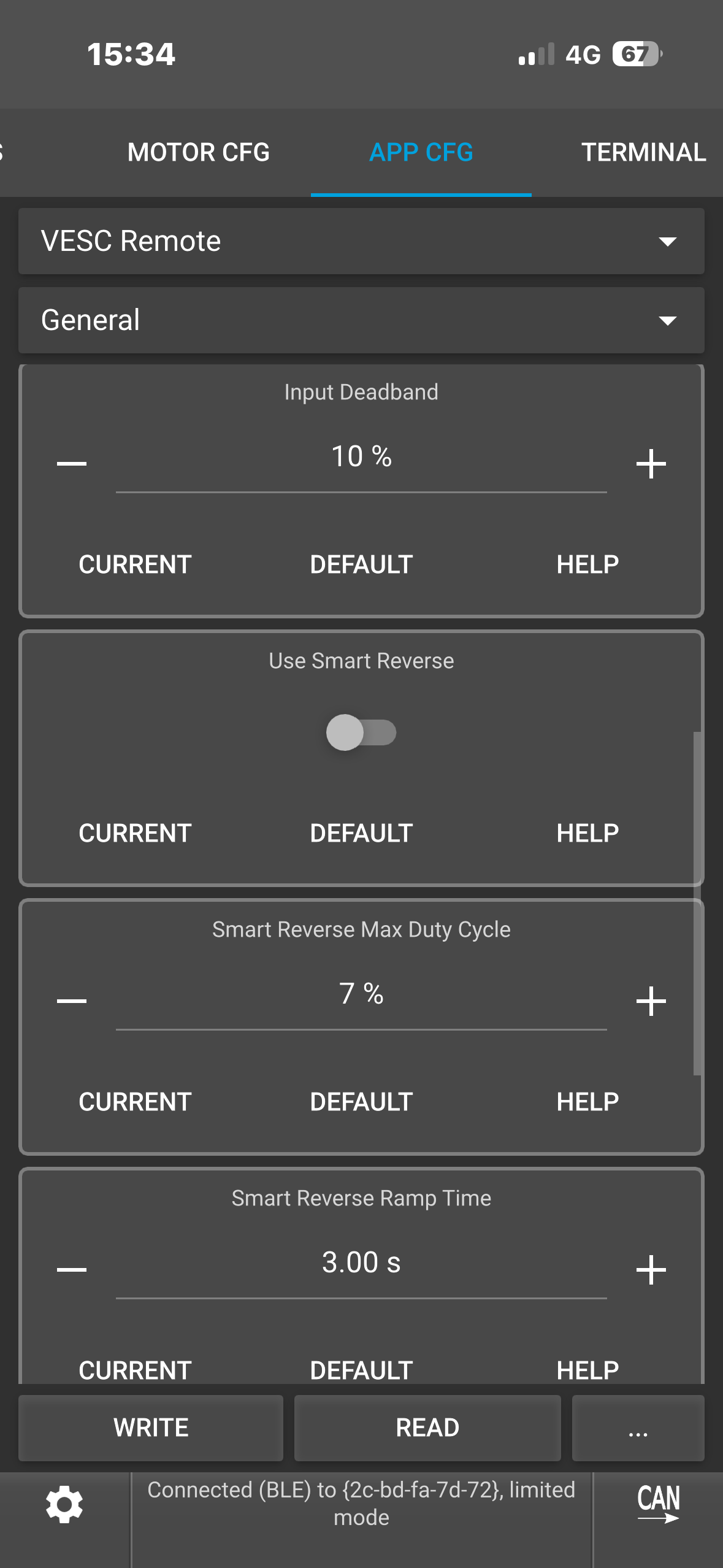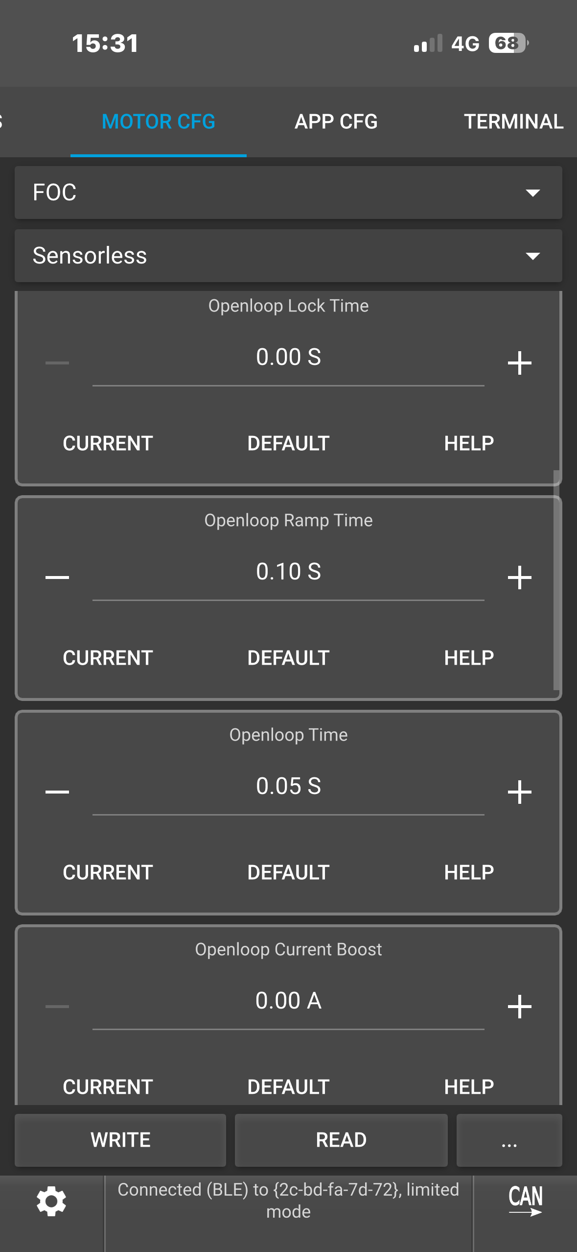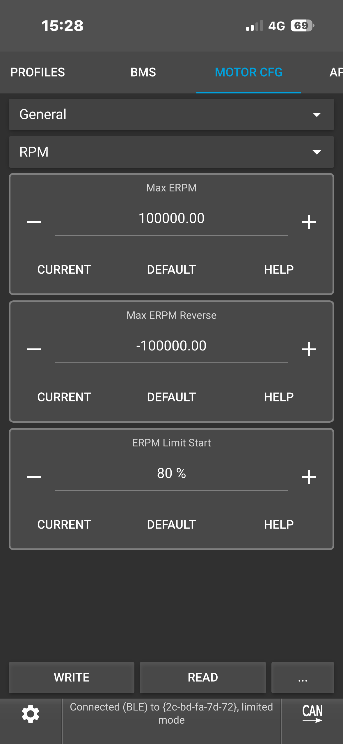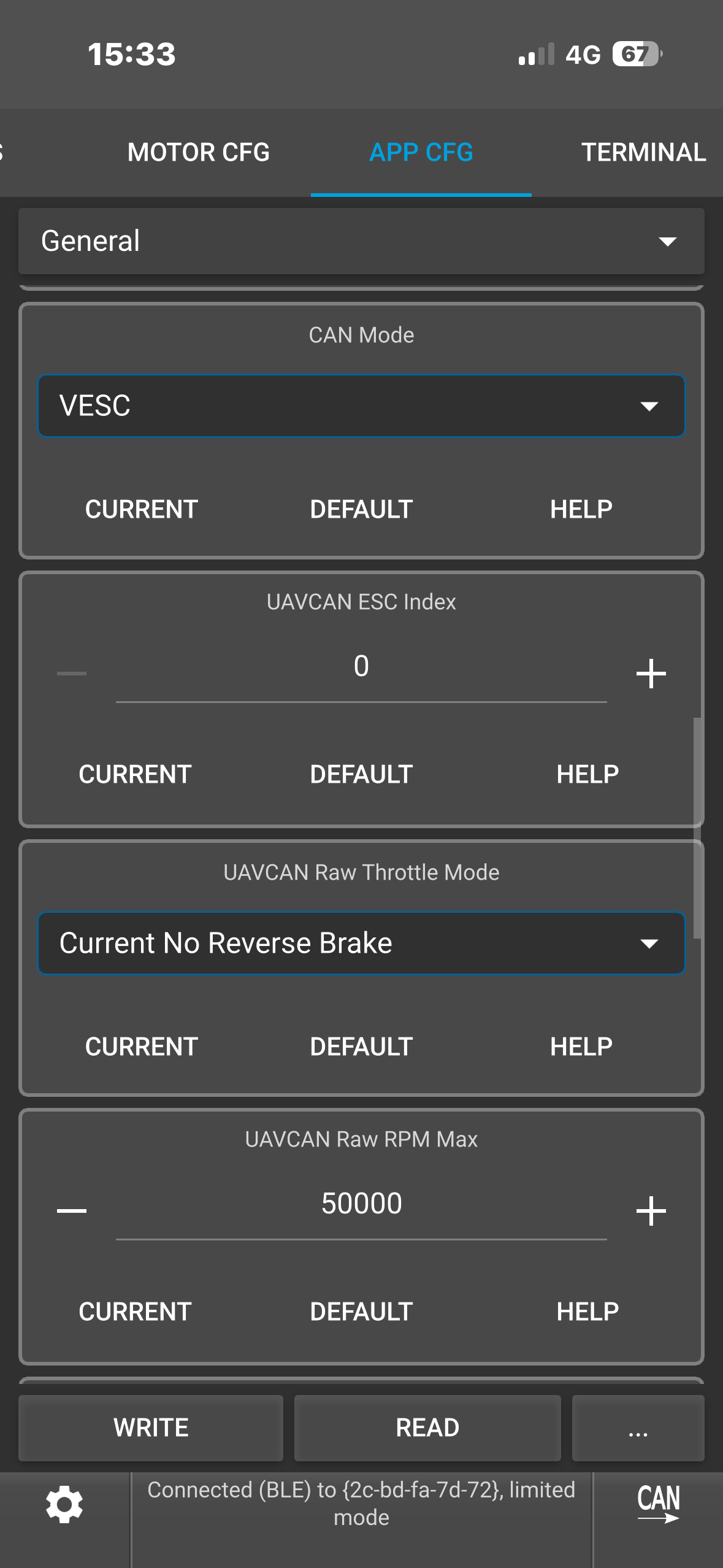 (Note: To see the ACTUAL current it’s tripping at, type “faults” in the VESC terminal while it’s connected. This would show you the fault info which you could screenshot.)