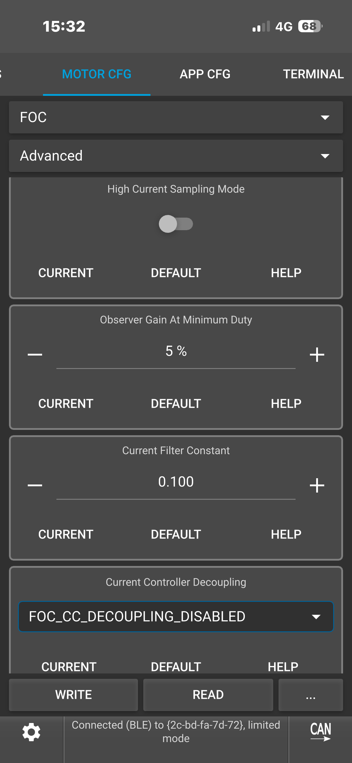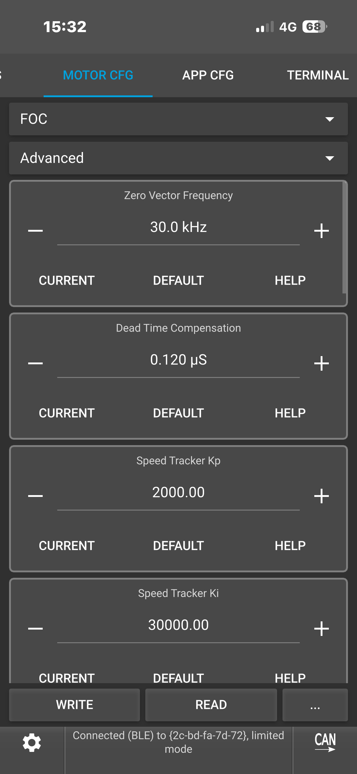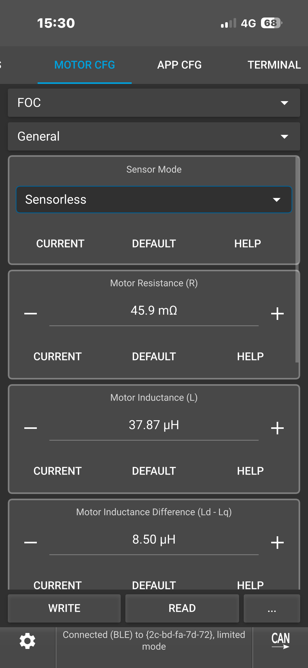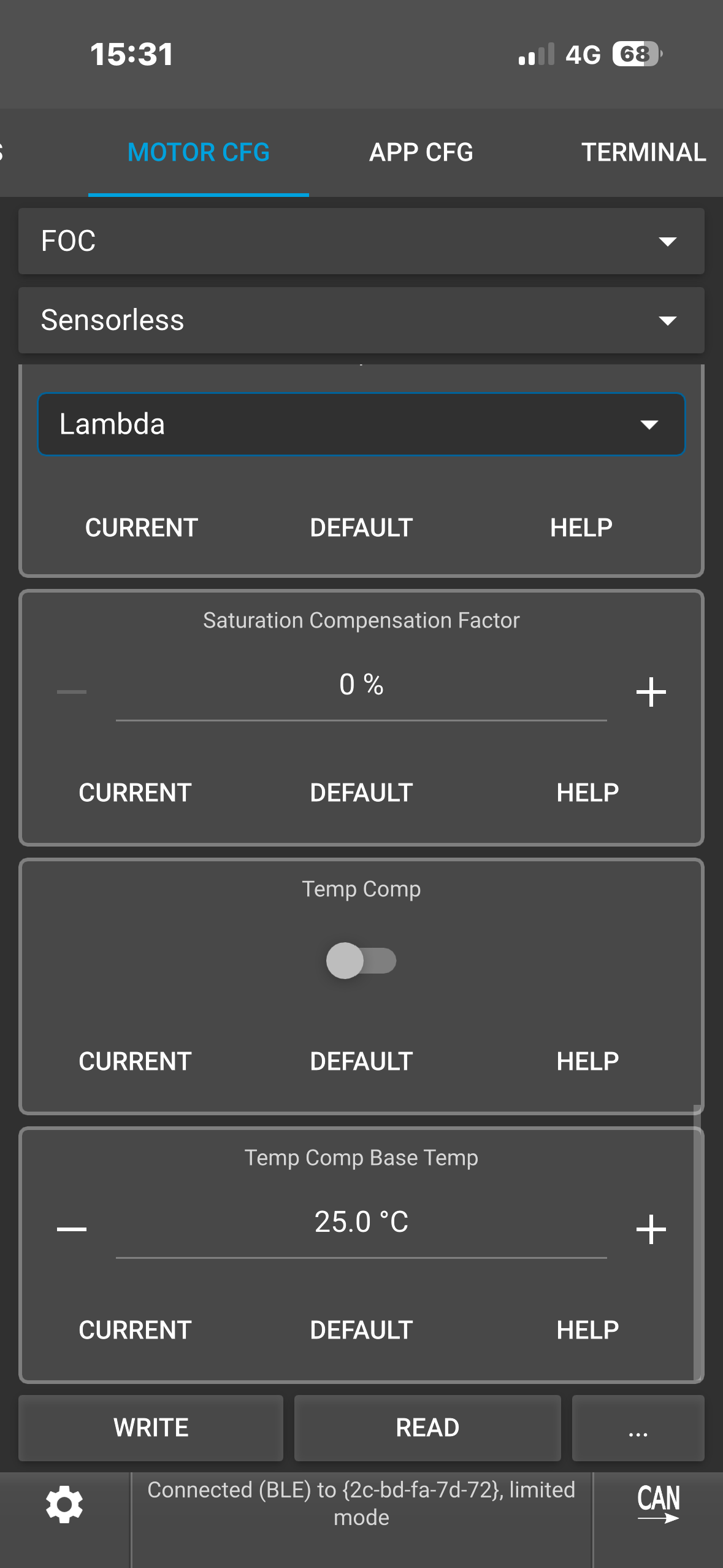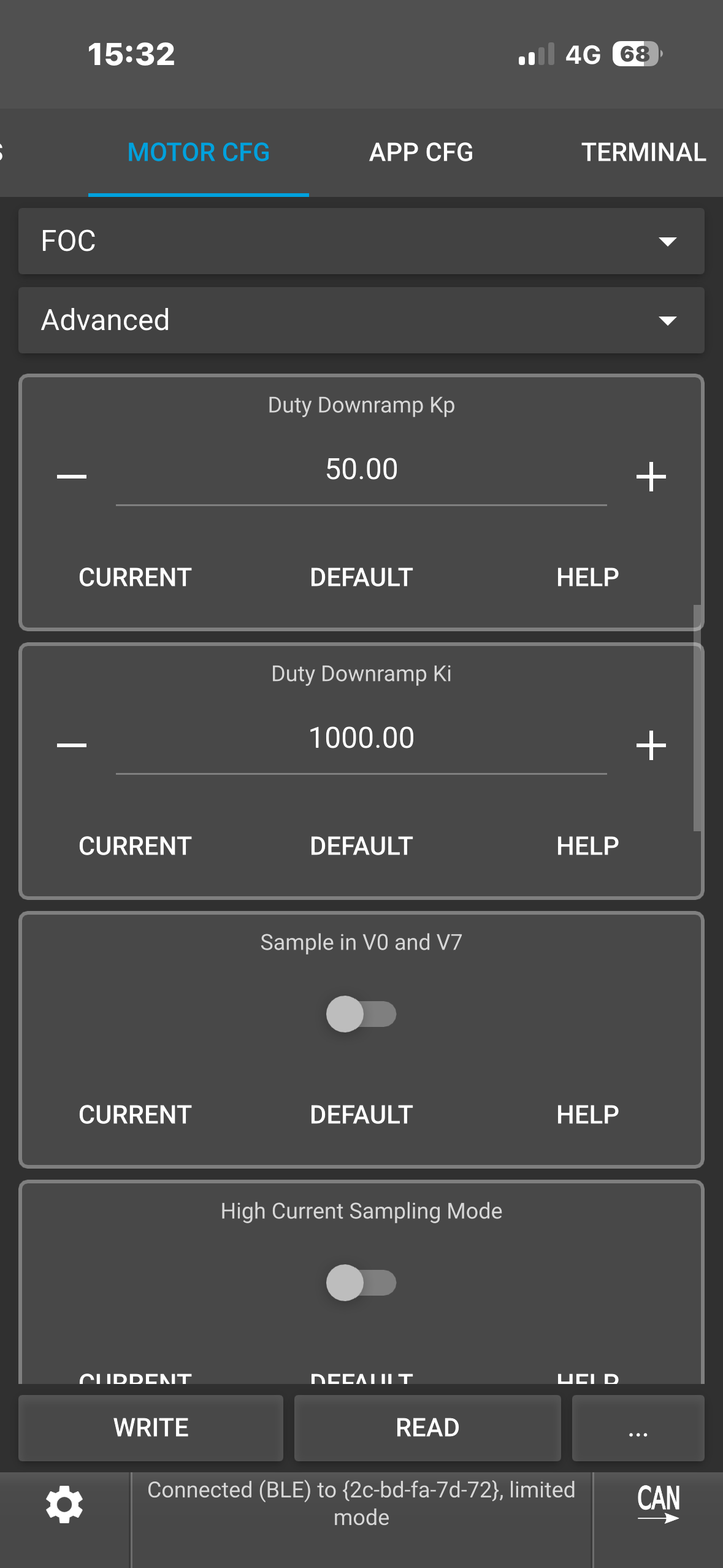 (Note: To see the ACTUAL current it’s tripping at, type “faults” in the VESC terminal while it’s connected. This would show you the fault info which you could screenshot.)