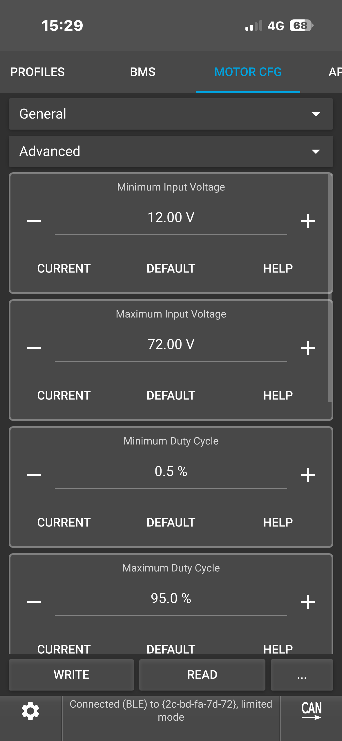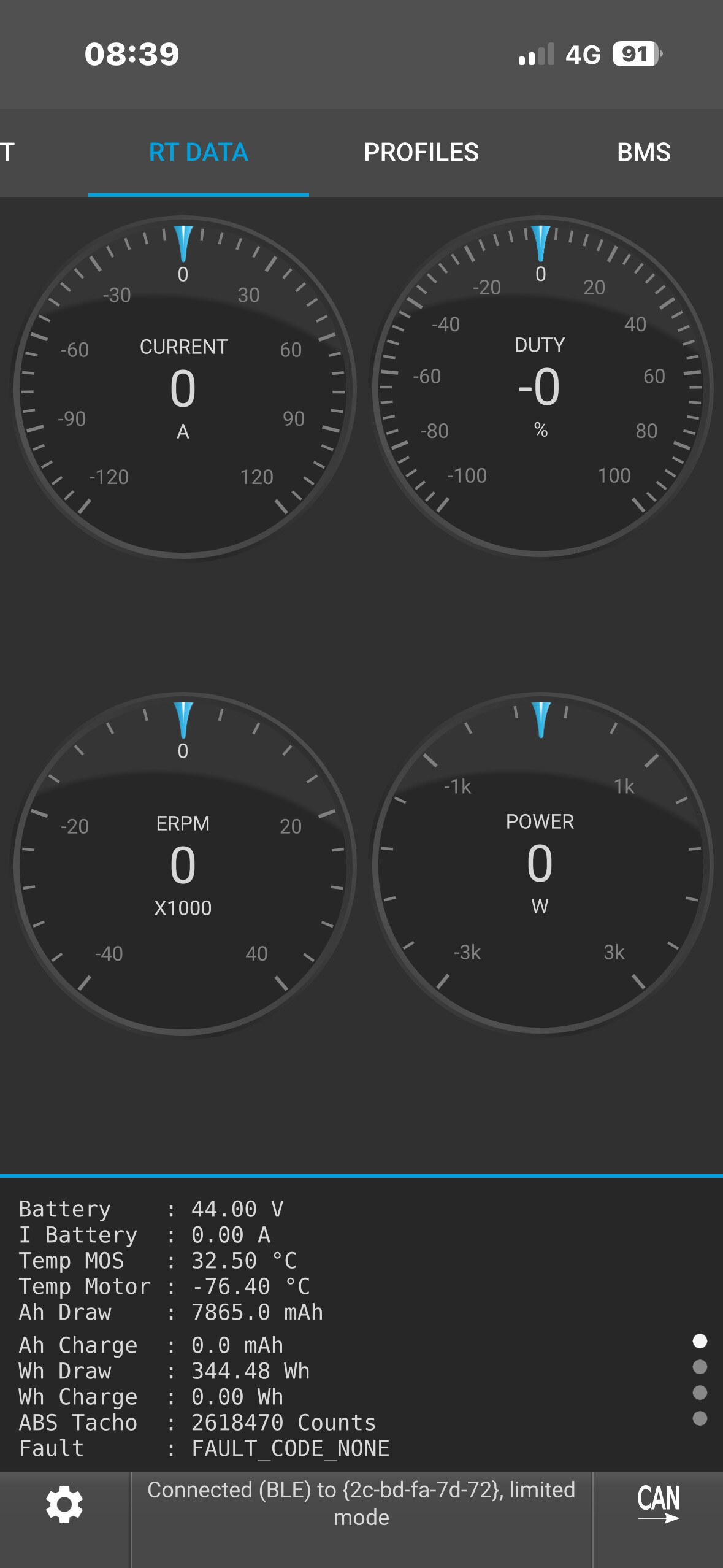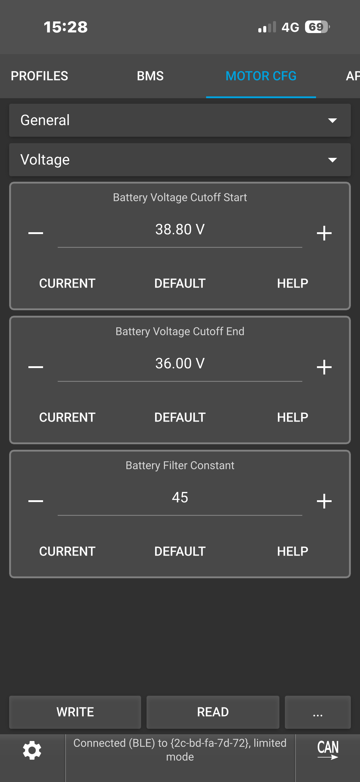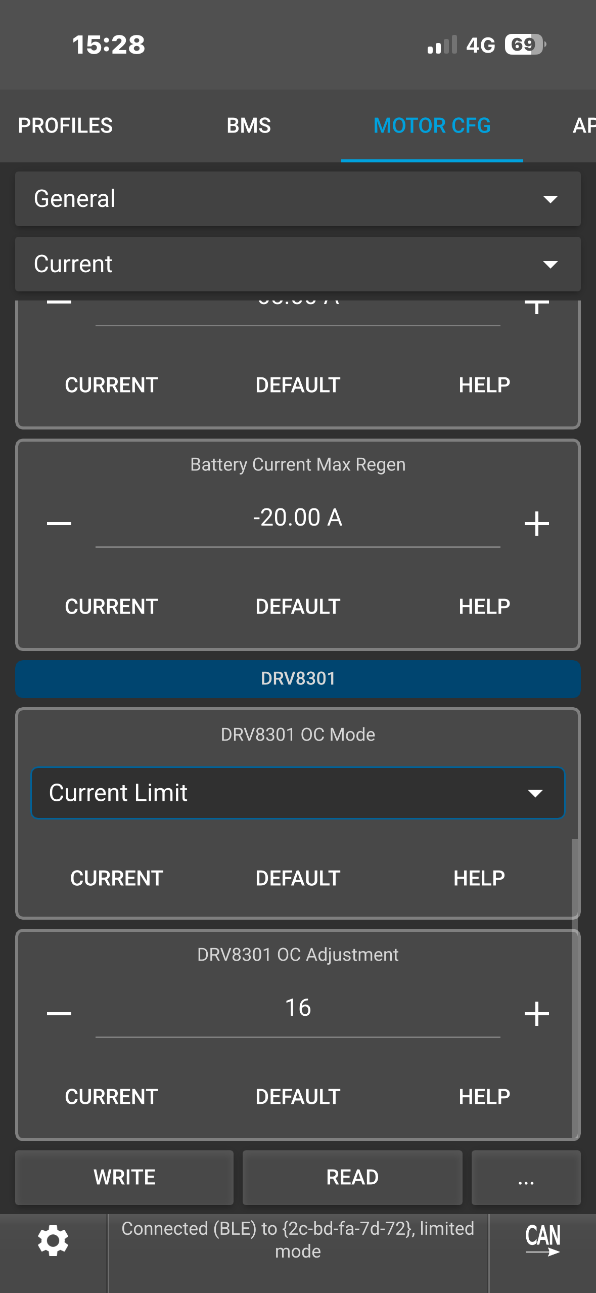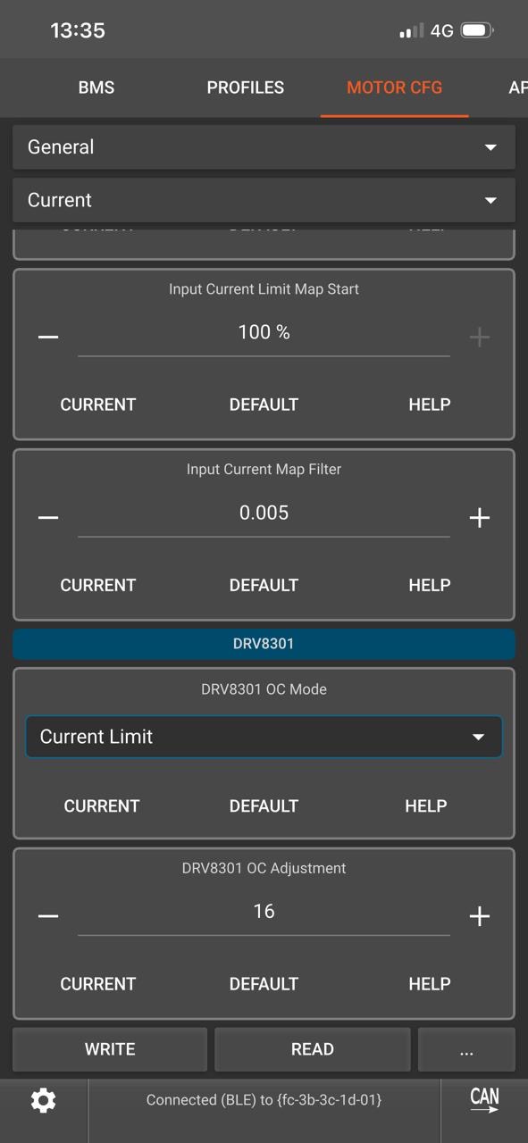 Hello, I think I have a hardware cutoff on my 75100 v2 pro aluminum ; I’m getting cutoffs on peak currents that should be adding 160 amps, despite the absolute maximum current being set to 190 amps. On my old setup, I solved the problem when I found a parameter distribution that gave me a maximum peak current of 144 amps, but I can’t seem to get that on my new one. Any ideas? My current parameters are: battery current 65 amps, motor current 190 amps with an ABS limit of 95%.