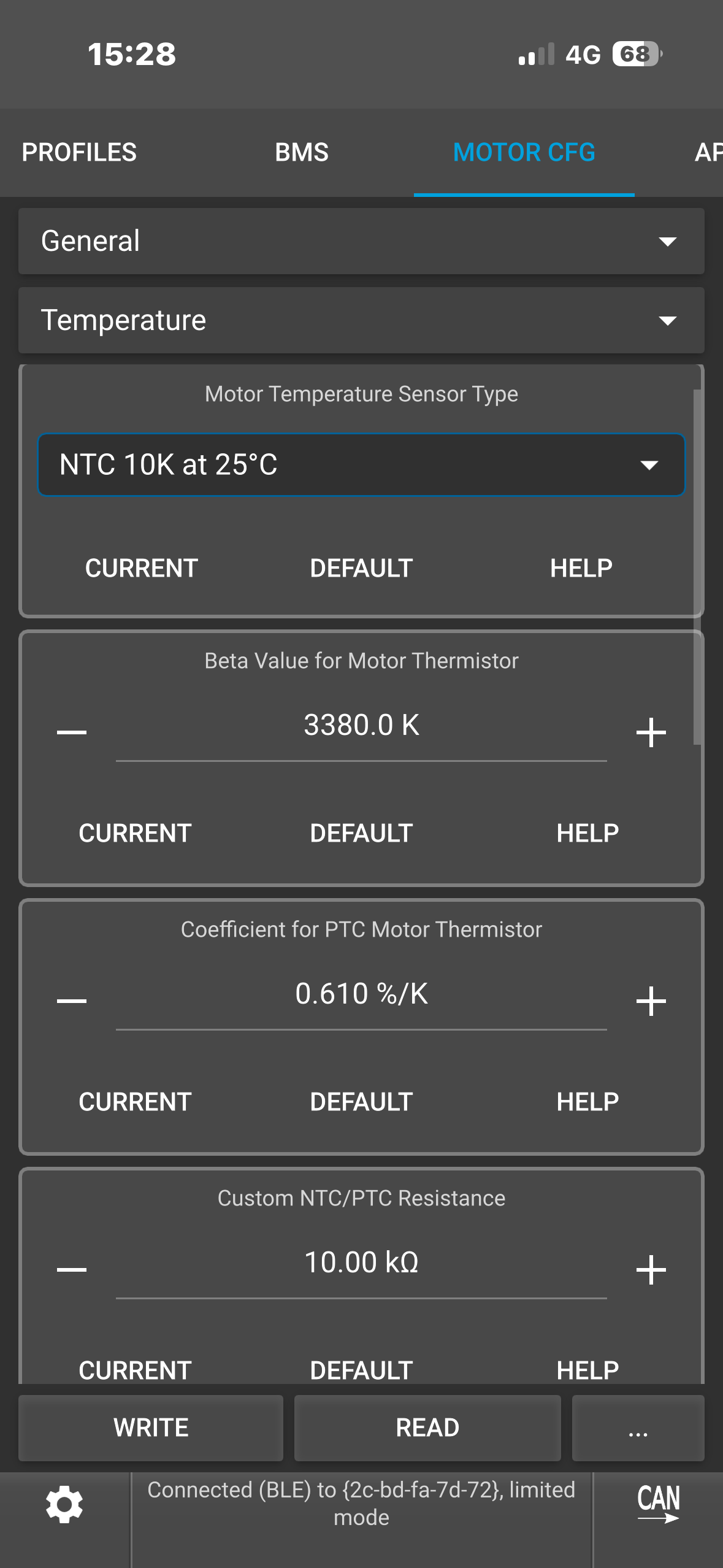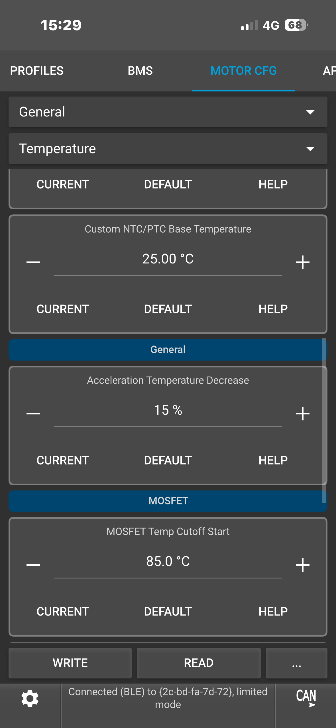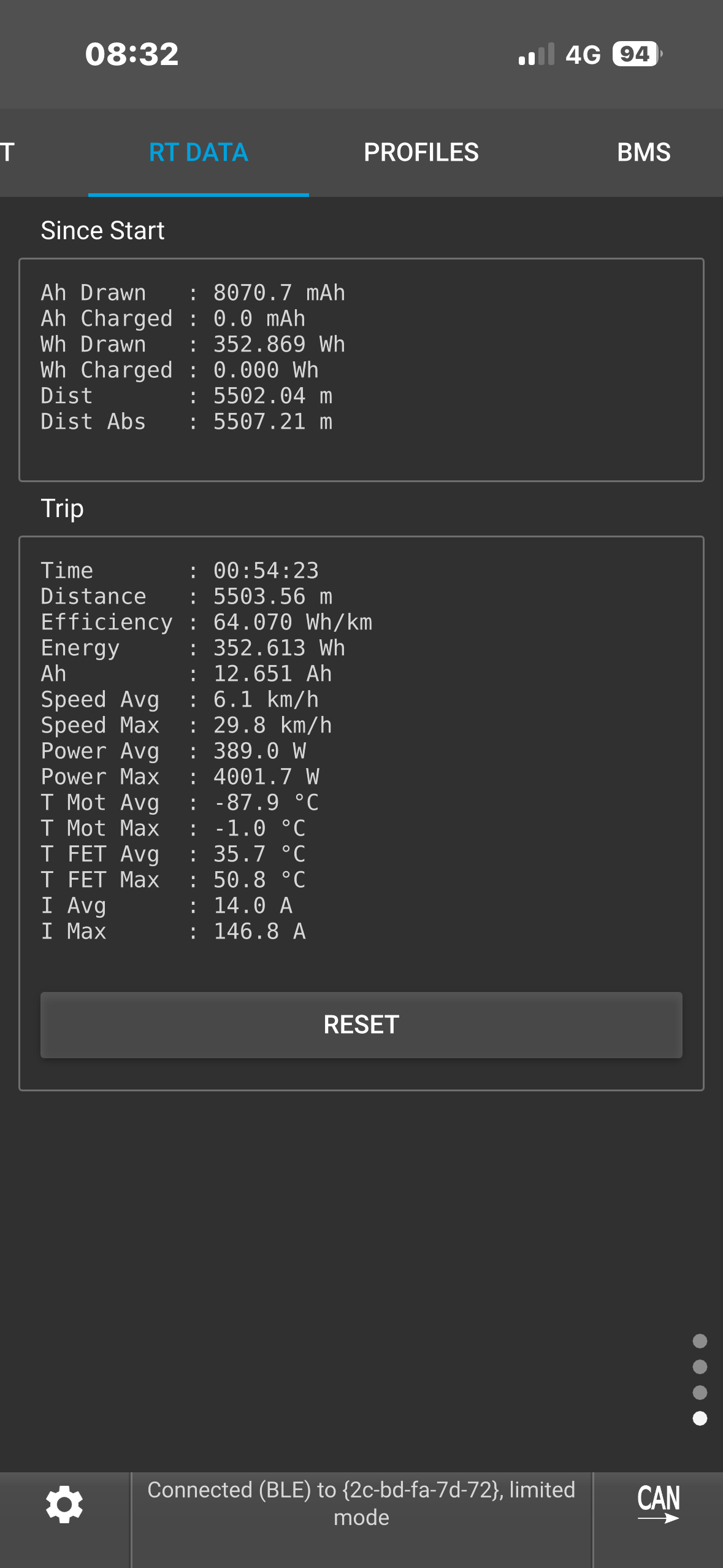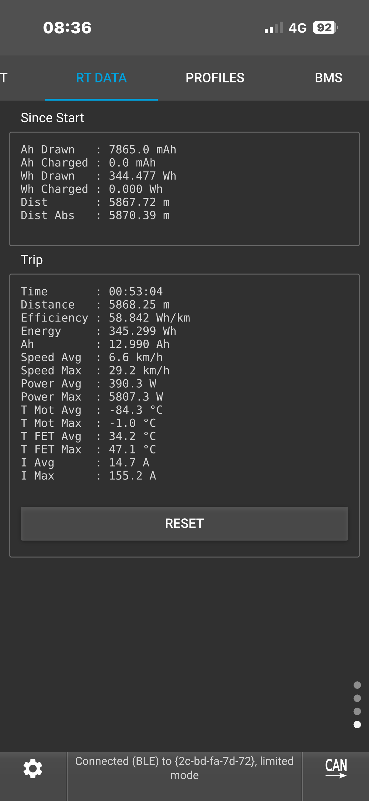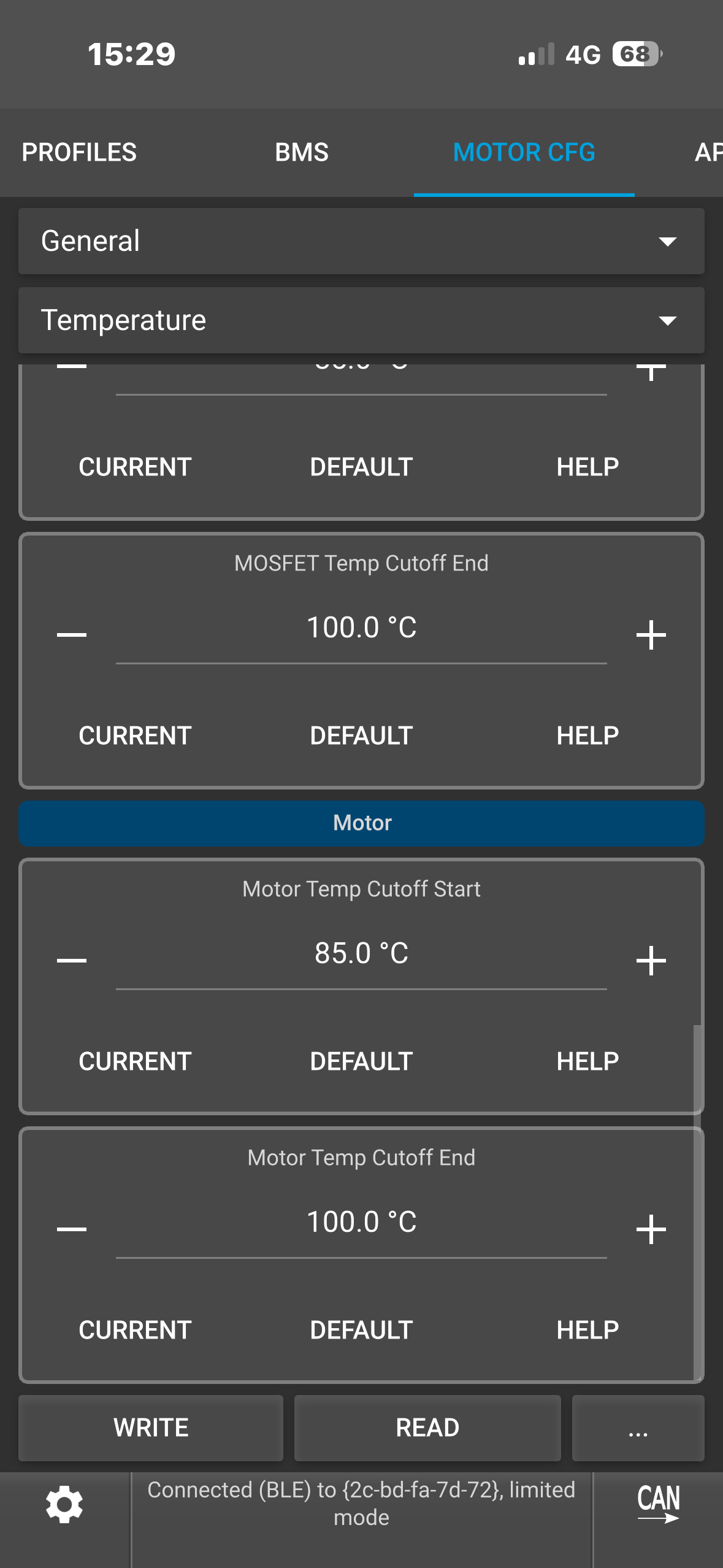 Hello, I think I have a hardware cutoff on my 75100 v2 pro aluminum ; I’m getting cutoffs on peak currents that should be adding 160 amps, despite the absolute maximum current being set to 190 amps. On my old setup, I solved the problem when I found a parameter distribution that gave me a maximum peak current of 144 amps, but I can’t seem to get that on my new one. Any ideas? My current parameters are: battery current 65 amps, motor current 190 amps with an ABS limit of 95%.