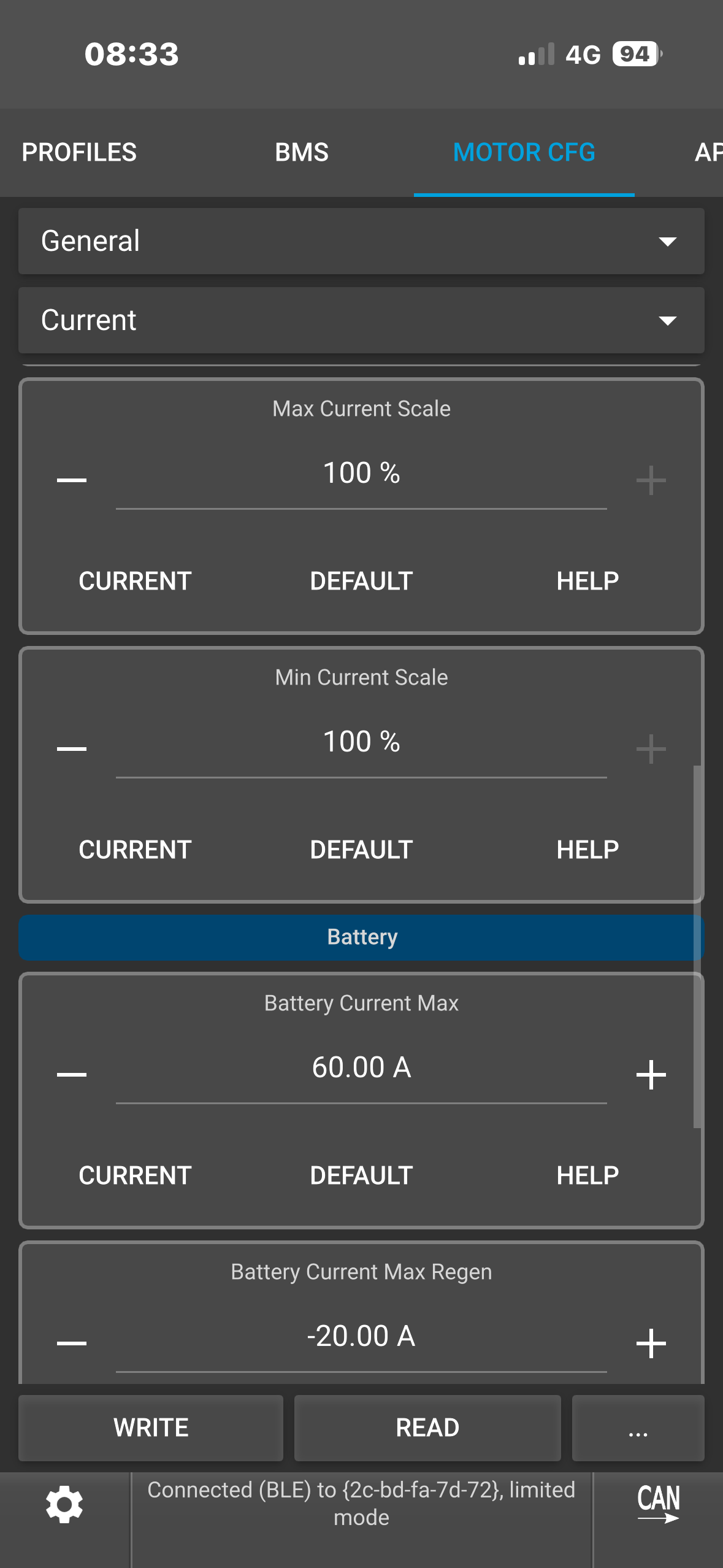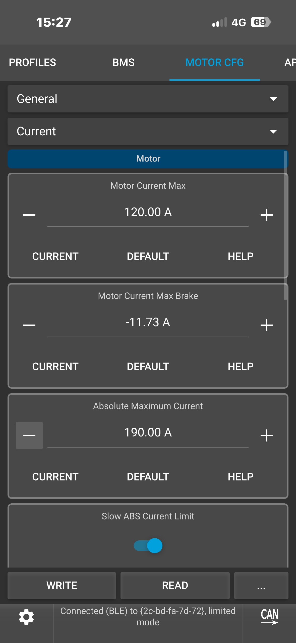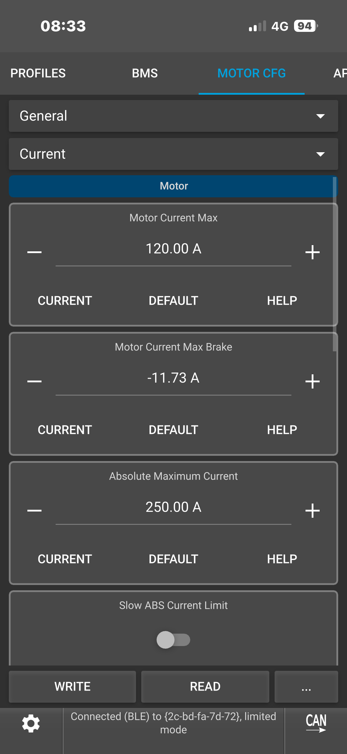 I am gonna try to put absolute max at 180 amp with slow abs current l limit enable and max current scale at 83%