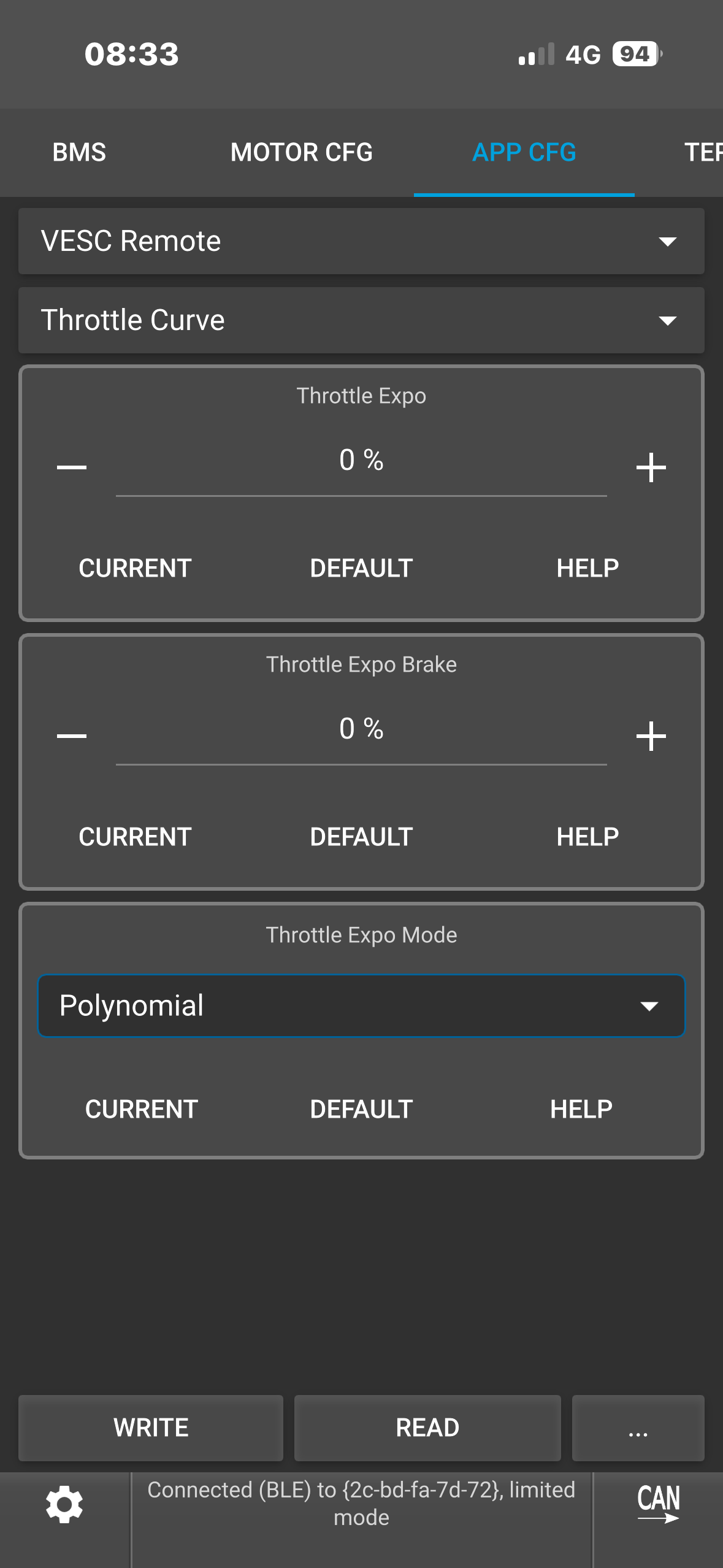 Why are you running exponential throttle? I run linear. I must dig out my vesc so I can get all the settings for you. Busy with a house move so its in a box somewhere…
