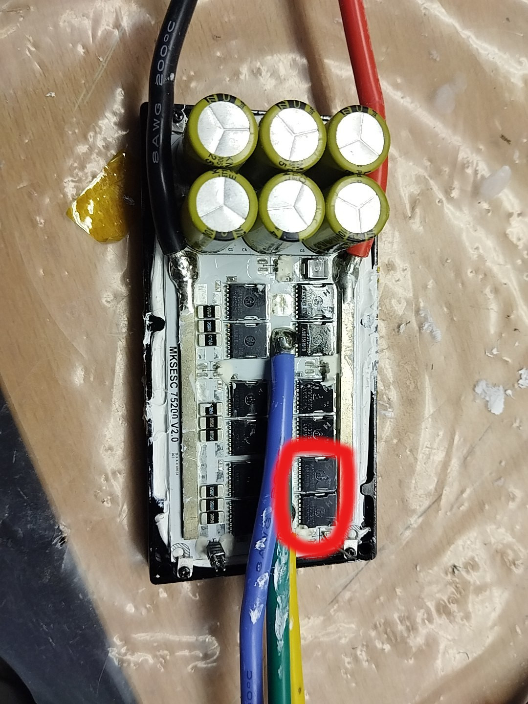 Hi! i had yesterday my first real water test and it did not go as expected, the motor cables ran into the prop and the ESC has now a short circuit in one of the six mosfets (they are actually 12 since it is a 75200)