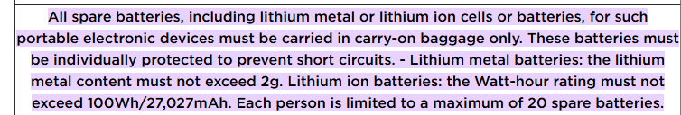 Seems like the travel is a bit of a minefield with some flights going well and some not so well. Nothing clearer for airlines than individual cells and the limit appears to be 20 batteries under 100Wh.