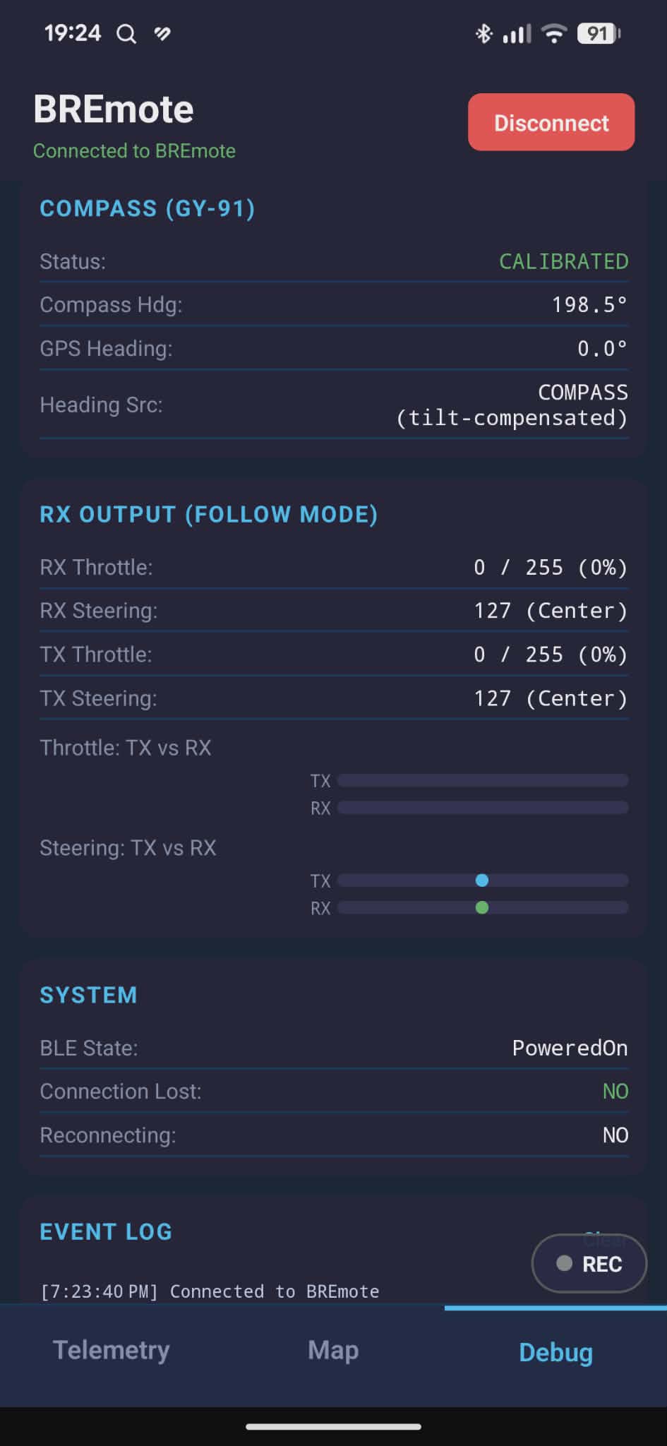 Also Bluetooth is enabled now and there is an app for debug (for now) and datalogging.