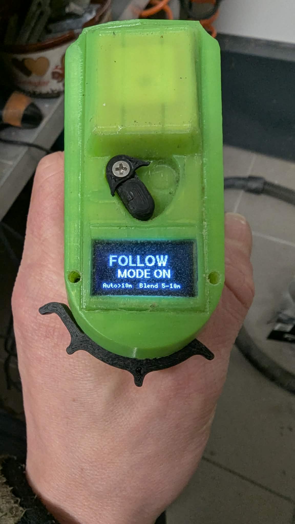 Hello ludwig, working on my own version of follow mode, looks like I have a working concept (made a small 3 wheel robot for testing on land). Added compass to improve accuracy. Was wondering what logic you plan to use for using follow mode with only trigger and toggle. Ideally I would enable follow mode and tow boogie would follow at 20m distance or so and not come closer. Then when I need I would override follow control and drive it manually to me and for waterstart. An extra button would solve this easily