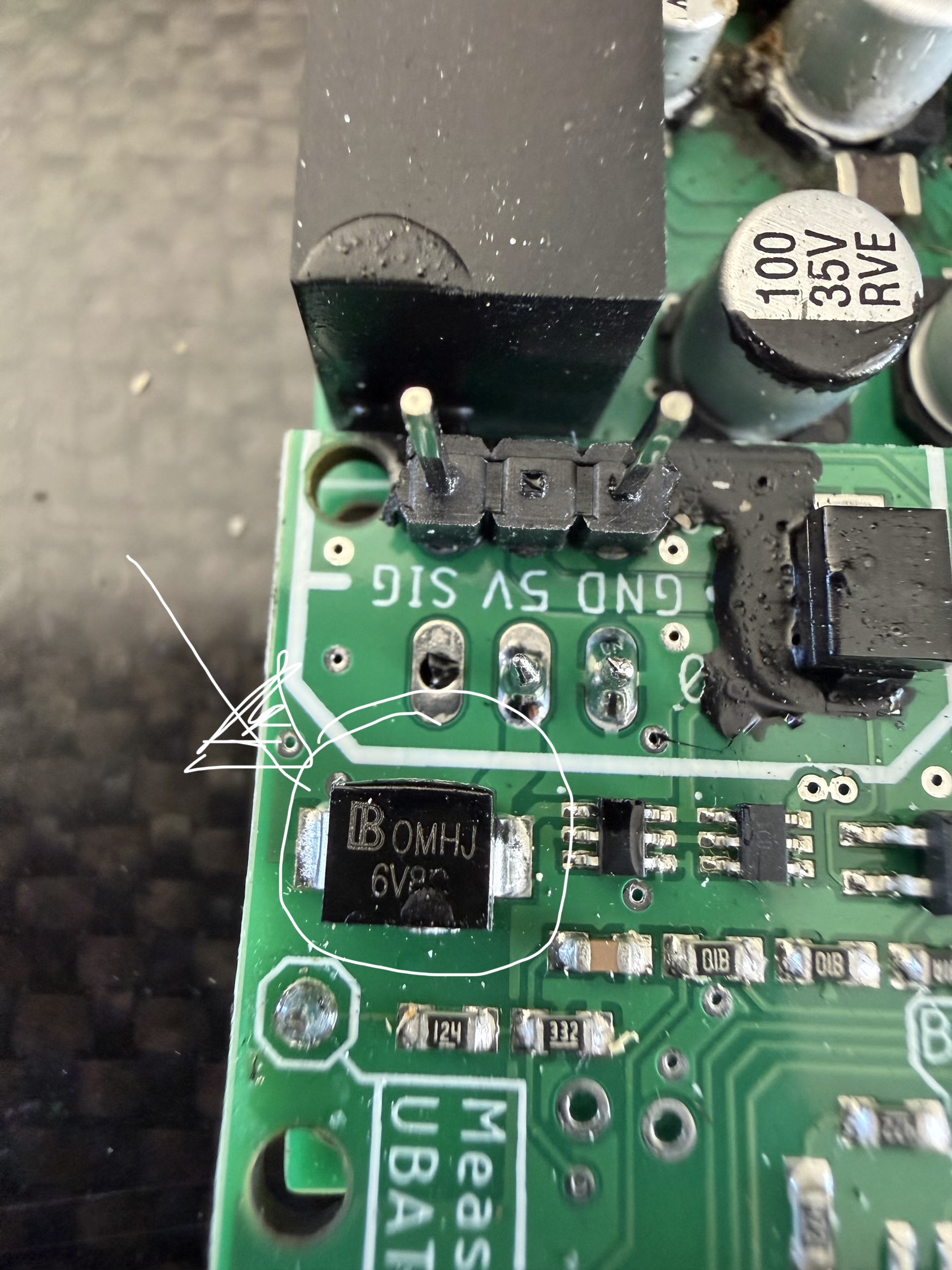 If the part in the 2nd image blew (labelled OMHJ 6V8) you either: