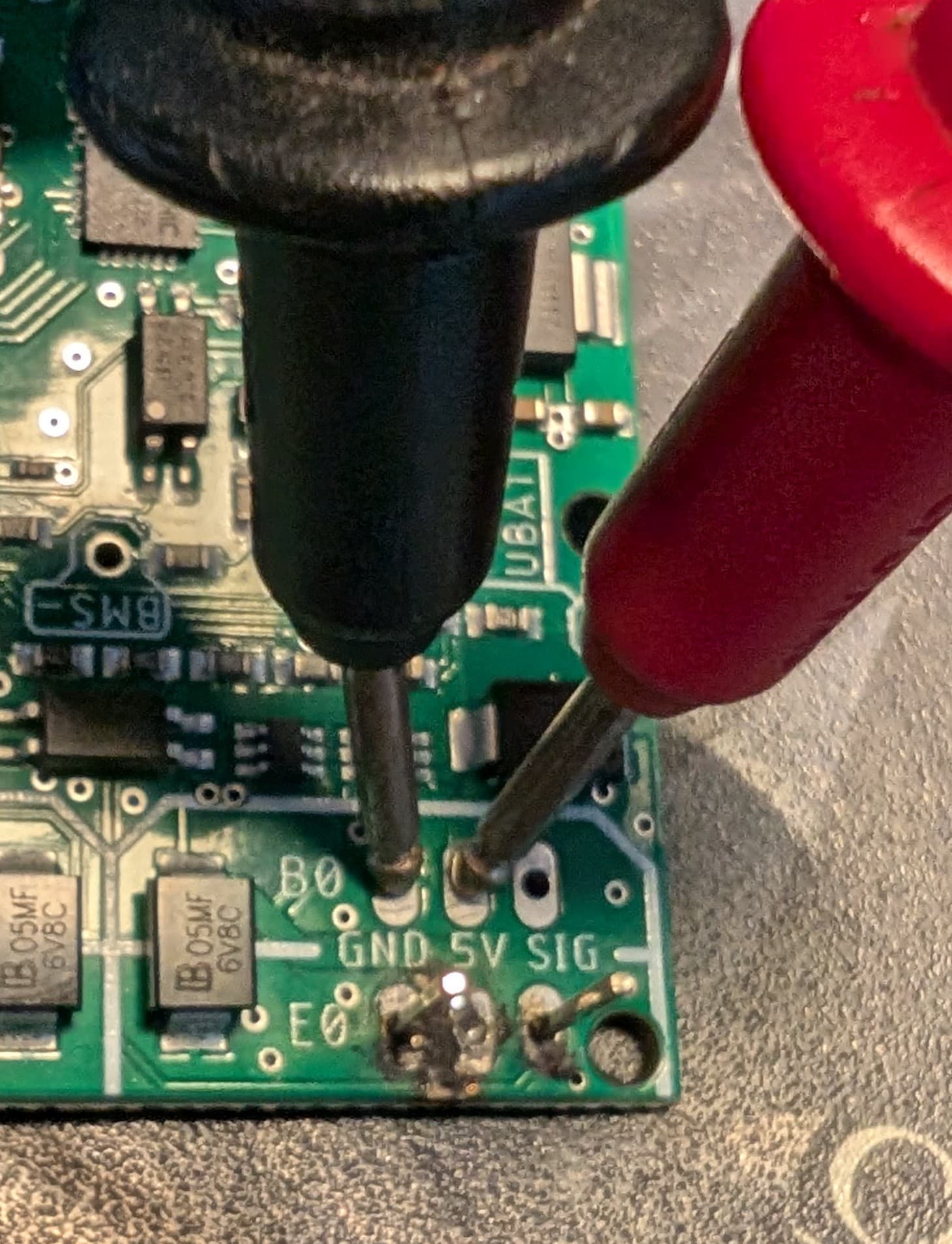 With multi meter at which points do I check 5v at B0 and B1. I don’t won’t to blow myself up