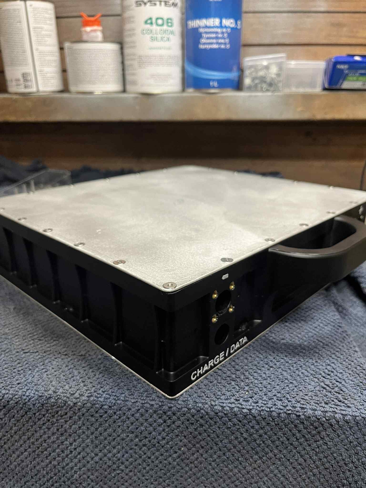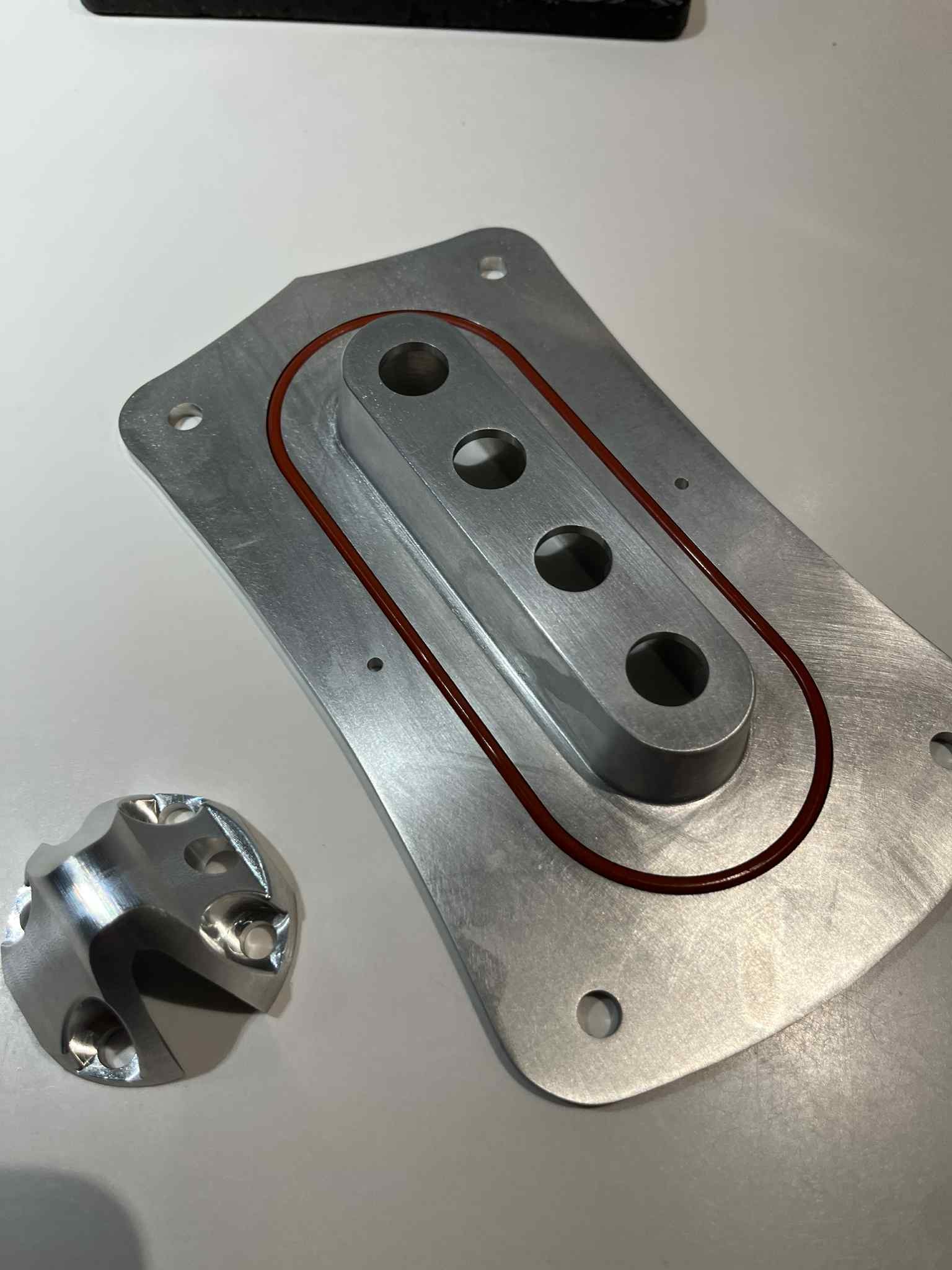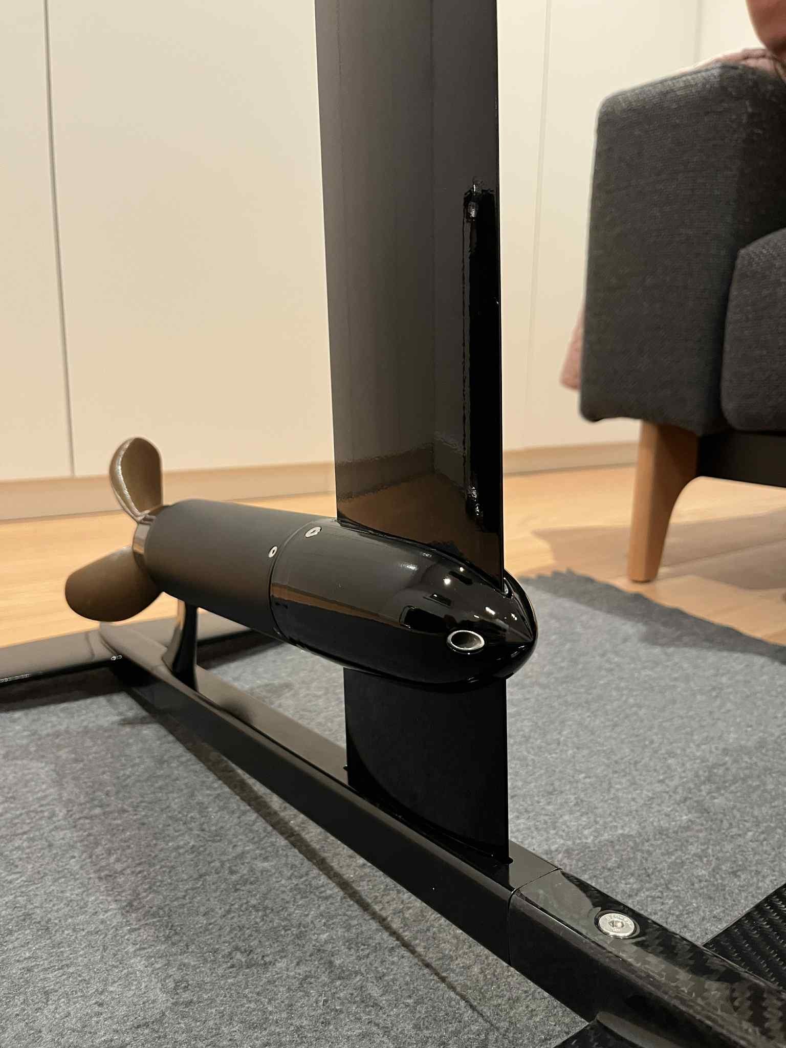 I use a 700mm GONG V1 mast with V1 fuselage and a V1 1350cm2 front wing and 400cm2 rear stabilizer. These were sanded and painted with an automotive 2-part clearcoat or glossy powder coat. The motor is mounted to the mast with a 3d printed motor plate, and a CNC milled aluminum front mount. These are clamped around the mast with a TPU 3D printed shim. The interface plate between the mast plate and the board is also CNC milled aluminum with a silicone O-ring and cable glands. Both were made by JLCCNC.