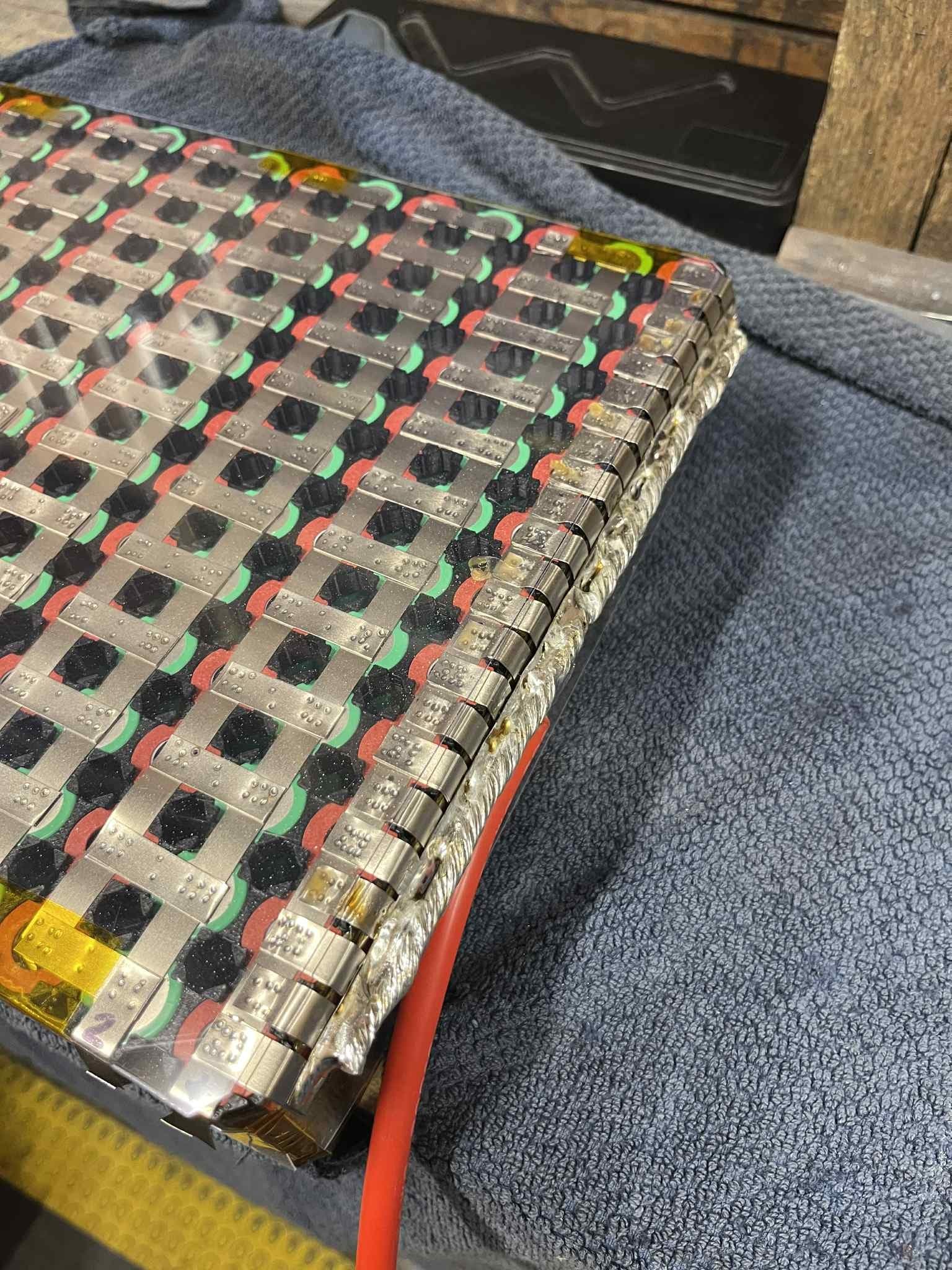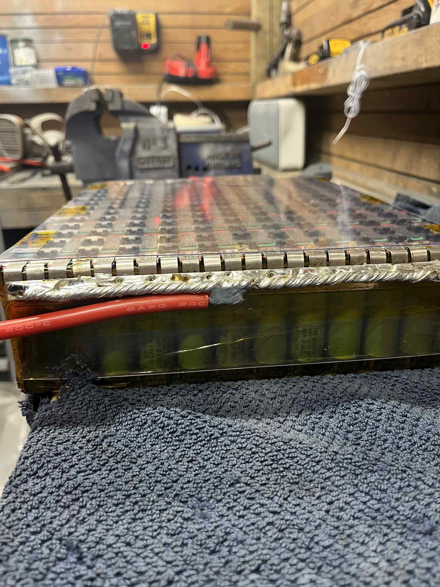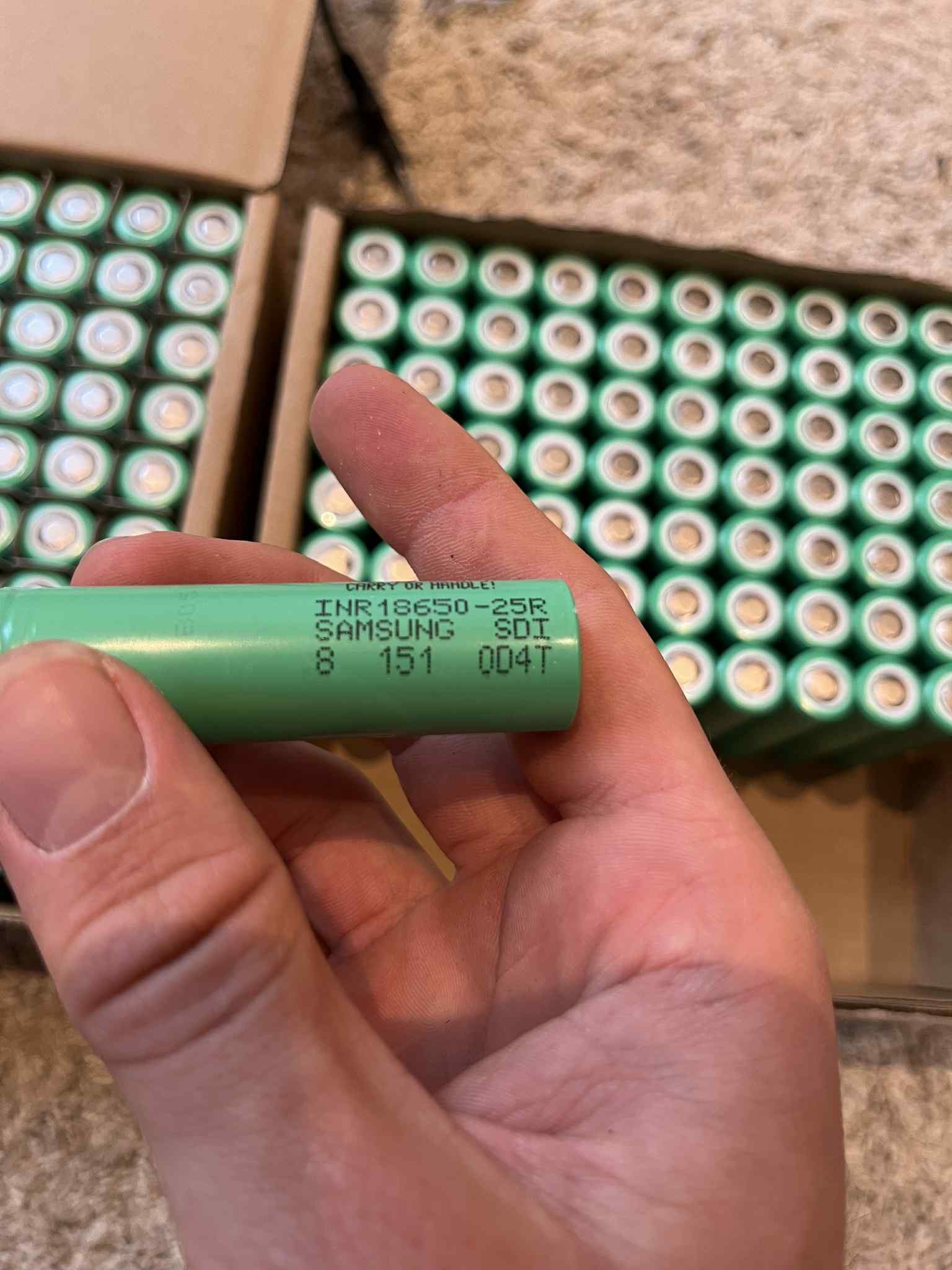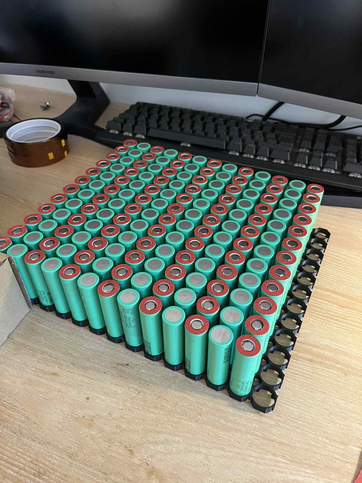 - Battery: 14S12P 18650-25R Samsung litium ion. 1,5kWh with 100A fuse. 2 layers of 0,2x8mm pure nickel strip. 6 AWG wire from battery to VESC.