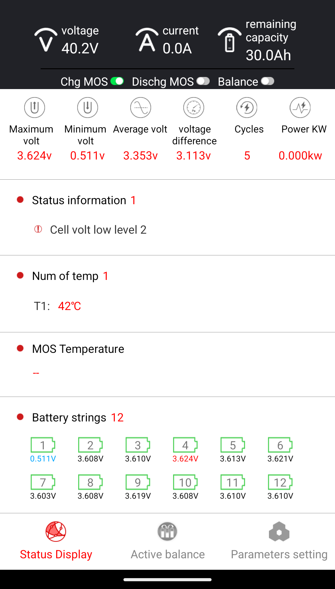 After 2 sessions in the weekend, my first cell string can no longer hold a charge, as shown below.