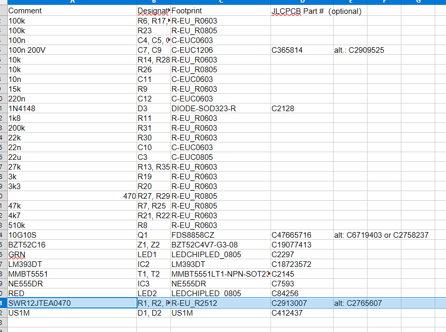 I did PCB designs and ordering before, but not assembled and at JLCPCB. As a hint for others: The upload to JLCPCB worked only for me after unpacking all data and packing it into a zip file.