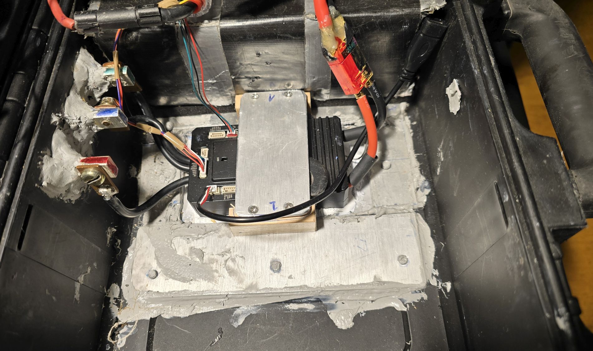 Watercooling is not really necessary: The ProV2 only comes as an aircooled controller. I used that directly in the box without cooling and could go on efoil for about 30min before it reached 70C in Summer (shown ‘live’ in remote so you know when to pause). In winter I could go longer. As a Tow-Boogie it got hotter (15min max) So I have glued a larger aluminum plate on the outside of the box and removed the plastic to mount the controller directly to that plate. Even when just aircooled it was very usable. Now I have the box sitting in a bit of water and the temps never exceed 32C.
