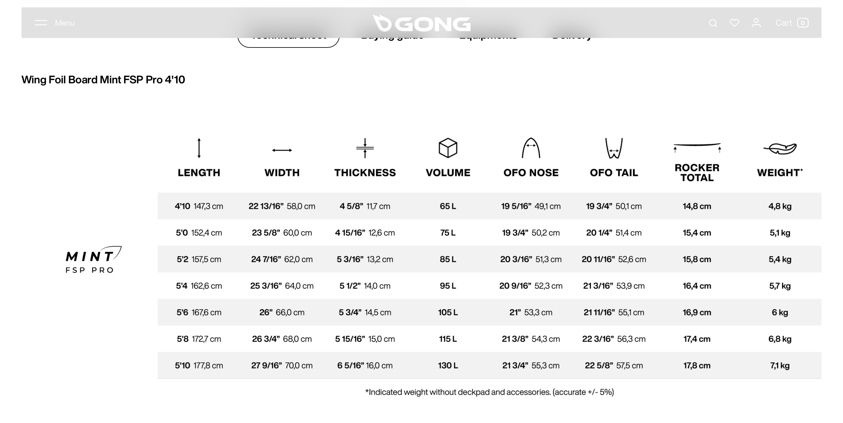 I don’t see this is the chart I posted but 120l is lots of volume for Efoil. Fliteboard largest glass board is 100l.