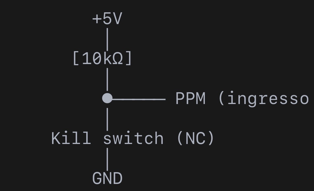 Connect killswitch from GND to PWM pin and a resistor from 5V to PWM pin