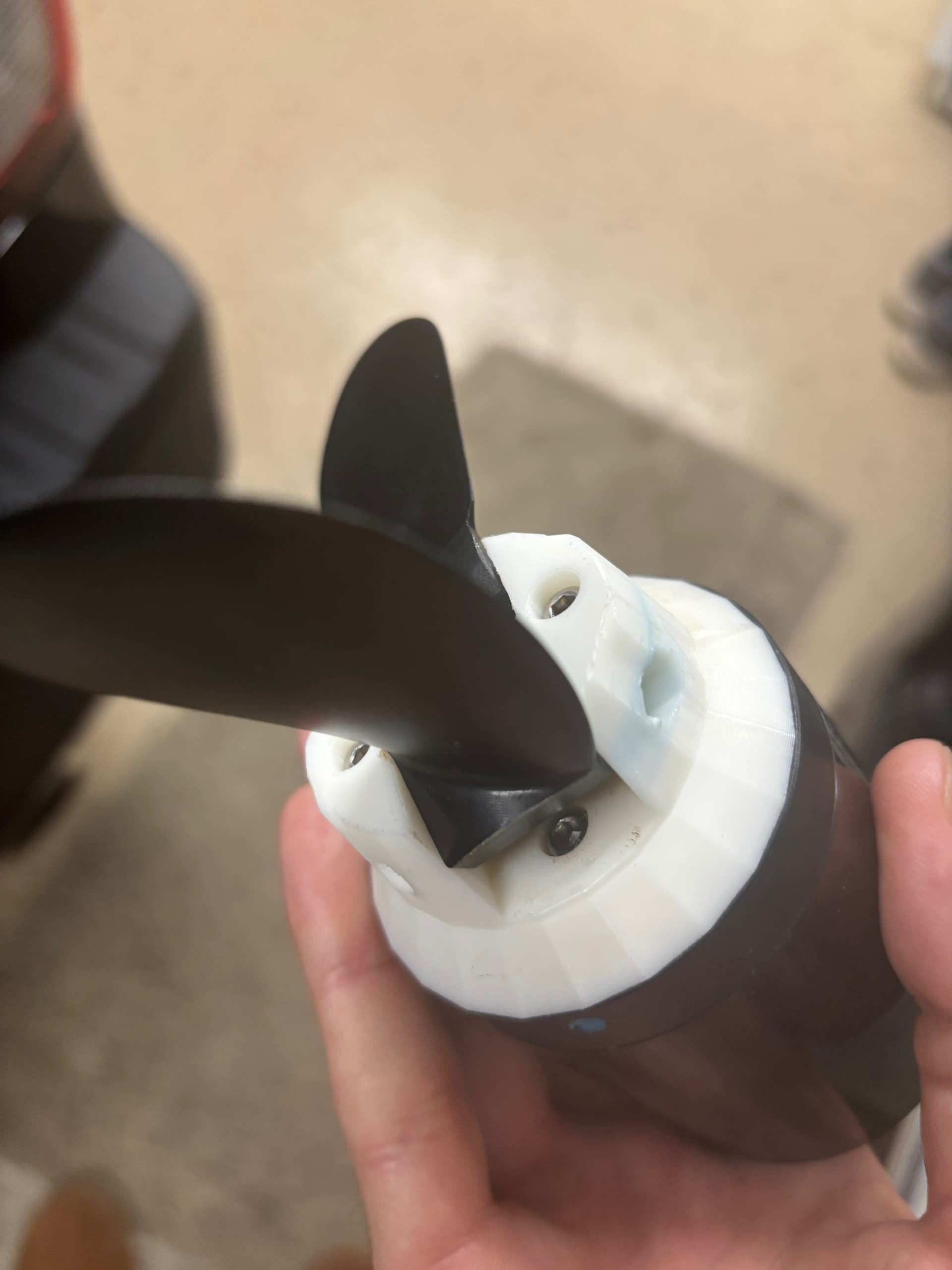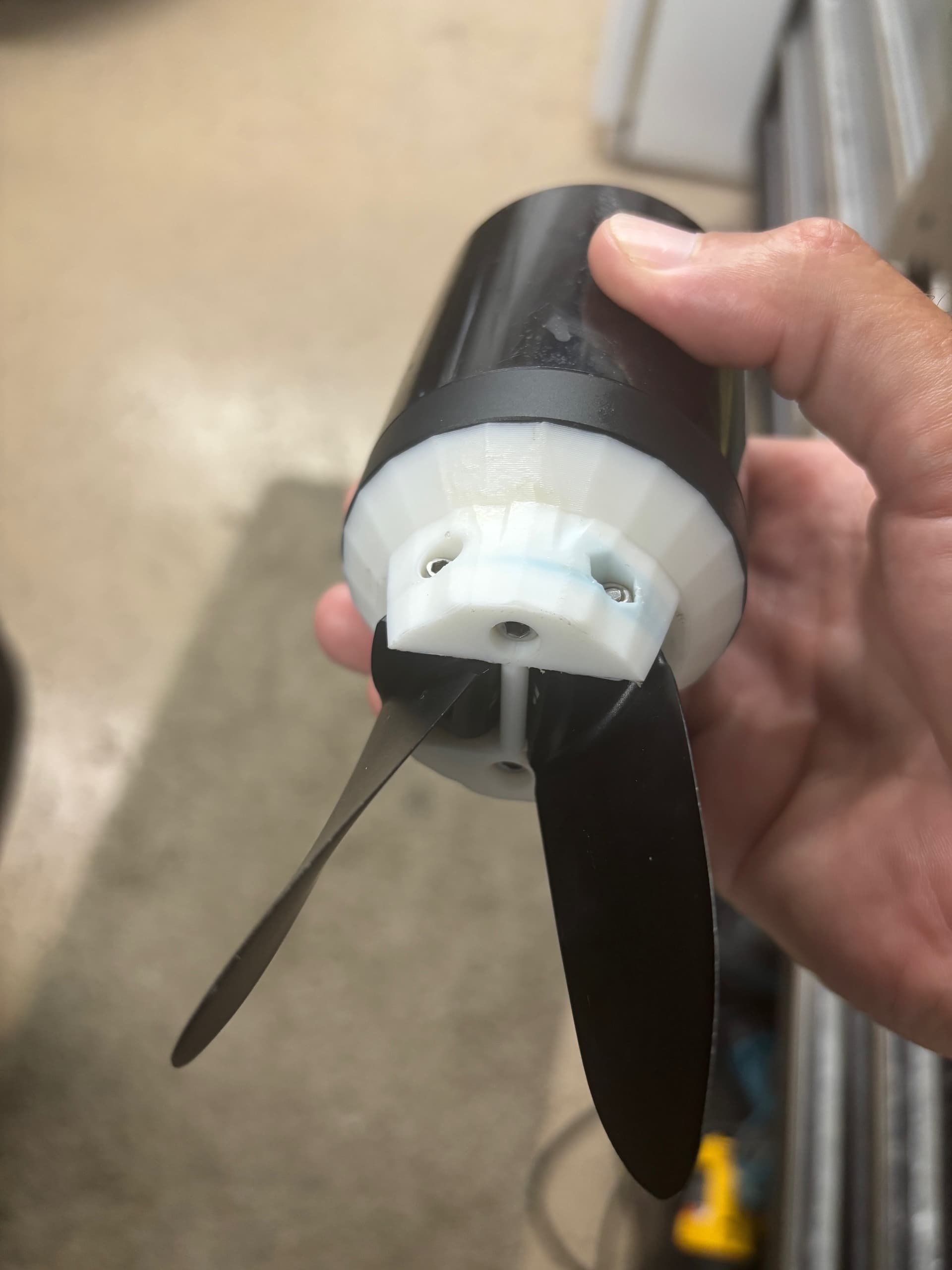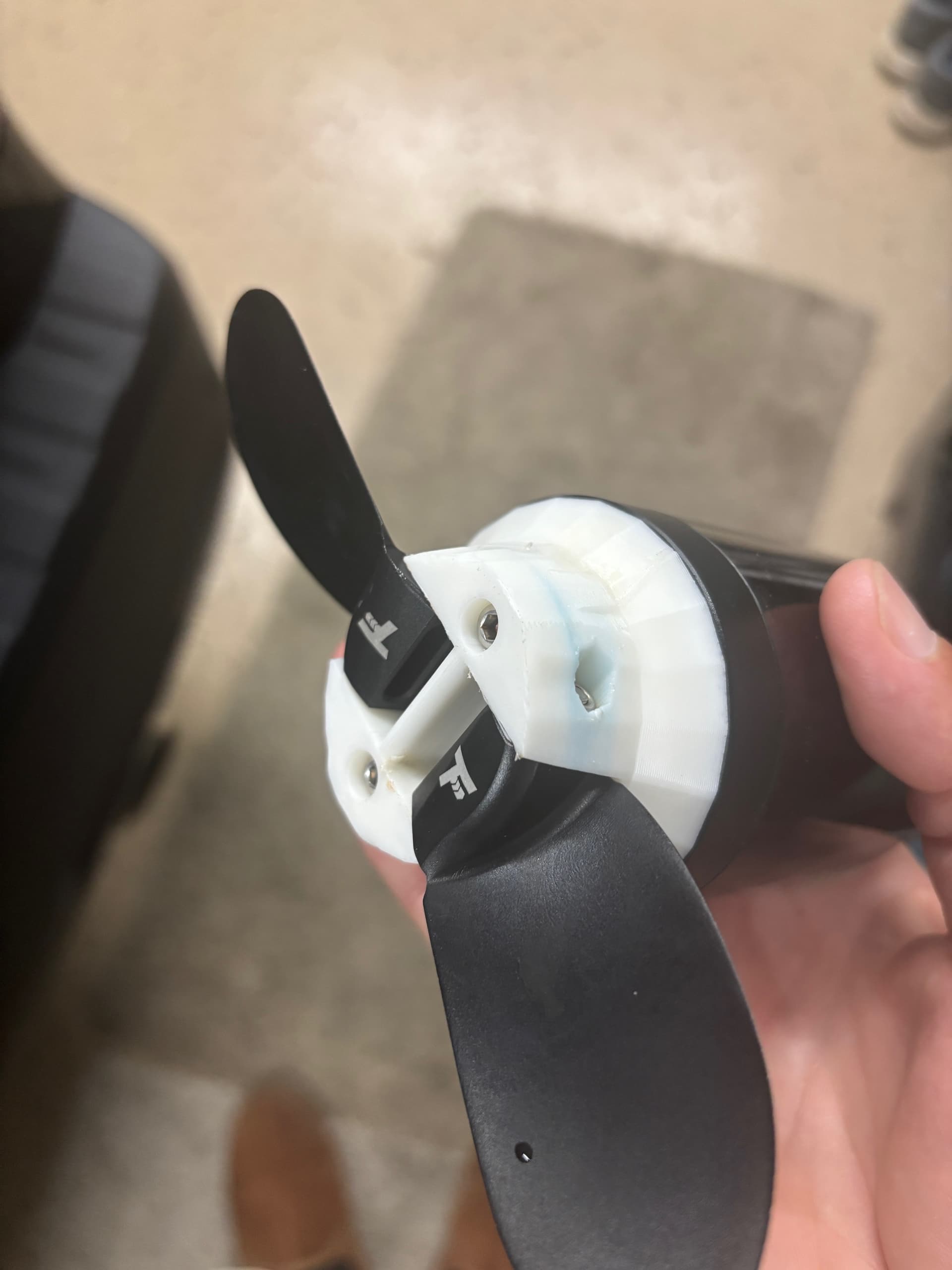 Wow I’ve never had a failure, sorry to see that. I use eSUN PLA+ Filament 1.75mm for all of my prints off of Amazon. The Pod that connects to the mast, the hub, everything. I printed them out and hit it with a hammer 10x and it didn’t break, that gave me confidence. I do 100% infill which looks like you did too. I’ve heard of issues with PETG being brittle and needing proper 3d printer settings and wasn’t confident using it. The only thing I noticed was a small crack by where the bolt head threads into the prop, so I replaced it with a new print. That was after roughly 50+ hours of foiling. I’d recommend printing with PLA+ it’s cheaper and seems just as durable. Maybe replace every 25-40 hours of use? I went out to check my setup and it seems like I’m using a thinner version of the hub with 4 bolts that works better with foil drive props (they fold closer together). I’ve run this setup and the one you printer well over 50 hours without a failure. I will put up the link to download below. Here are the pics. Also I use blue loctite thread locked on the nuts for the props.