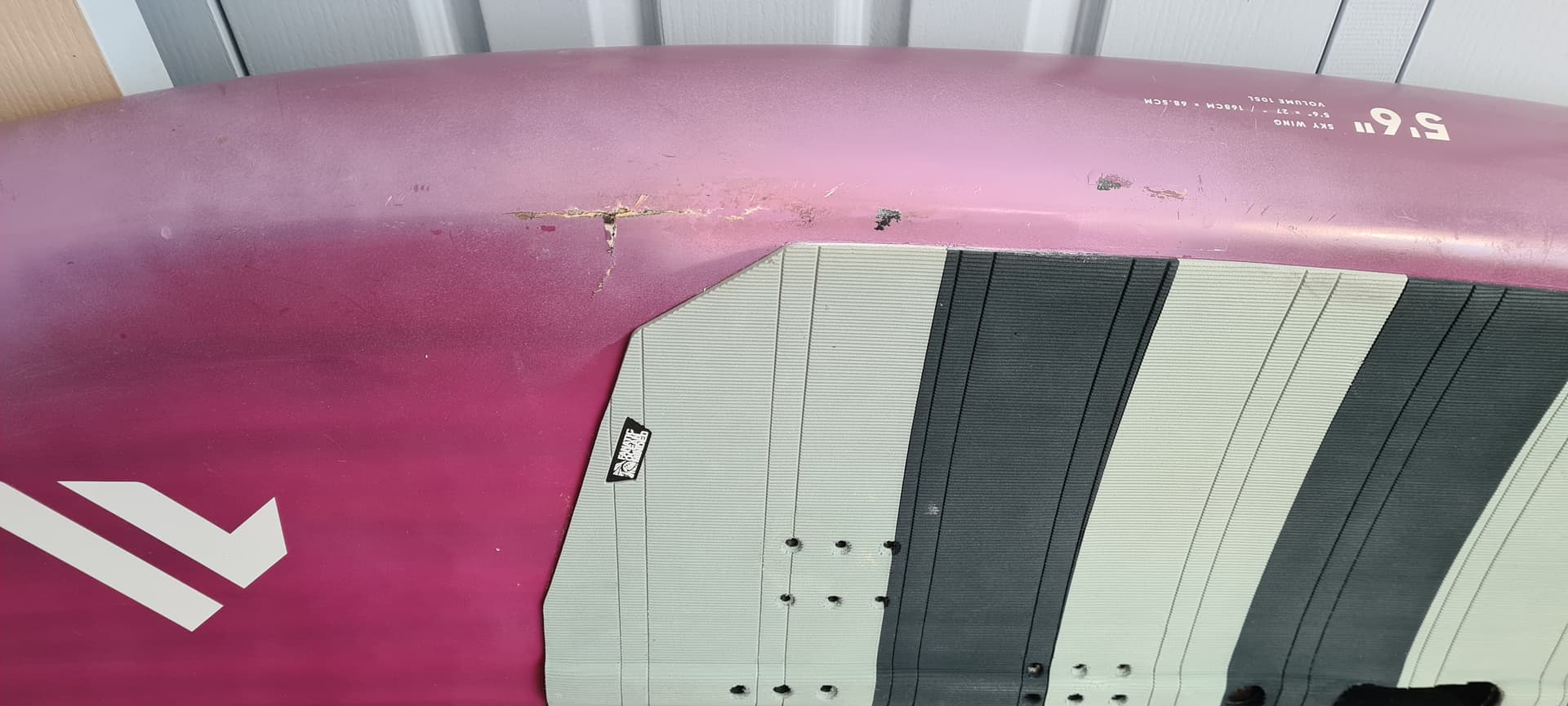 To get on the water you will need to install the brand new VESC (included) and possibly replace the main power cable to motor (also included). The board was used by me at 85kg and a 1300cm2 wing and worked great. There is a knee sized crack on the rail which will need patching, but board is dry.