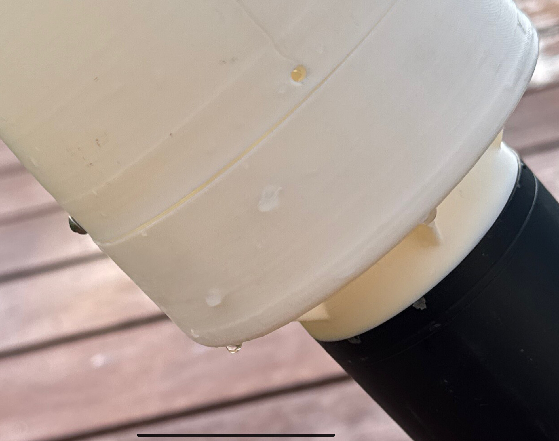 @kian idea of thread on is good and maybe thicker and/or longer overlap would help, Countersink screw head hole would reduce cavitation