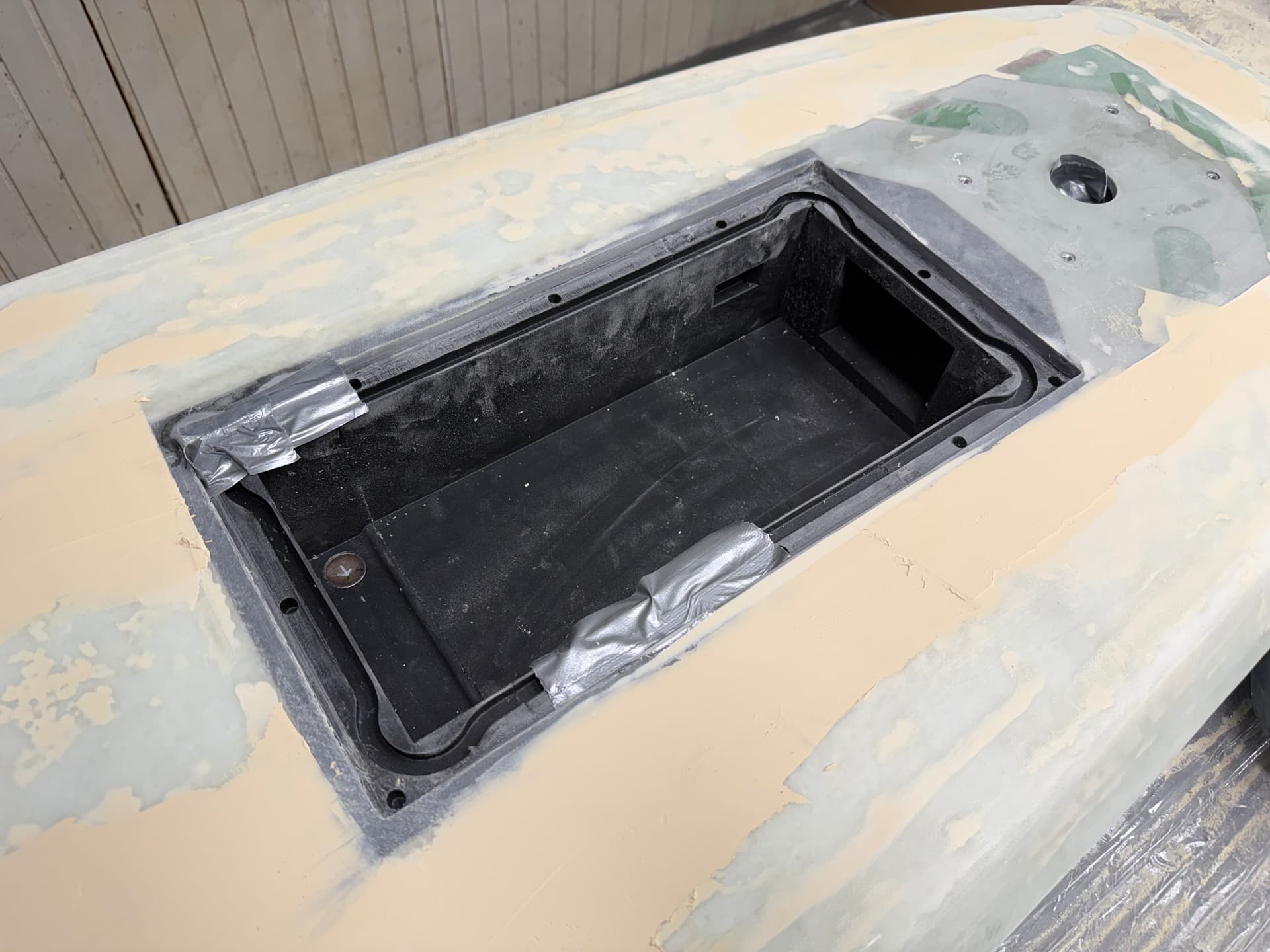 This is how the PCCF battery compartment looks like and also the aluminium board mast insert. Note that both of them mate in a specifict way between eachother and the two ribs - i know overcomplicated.