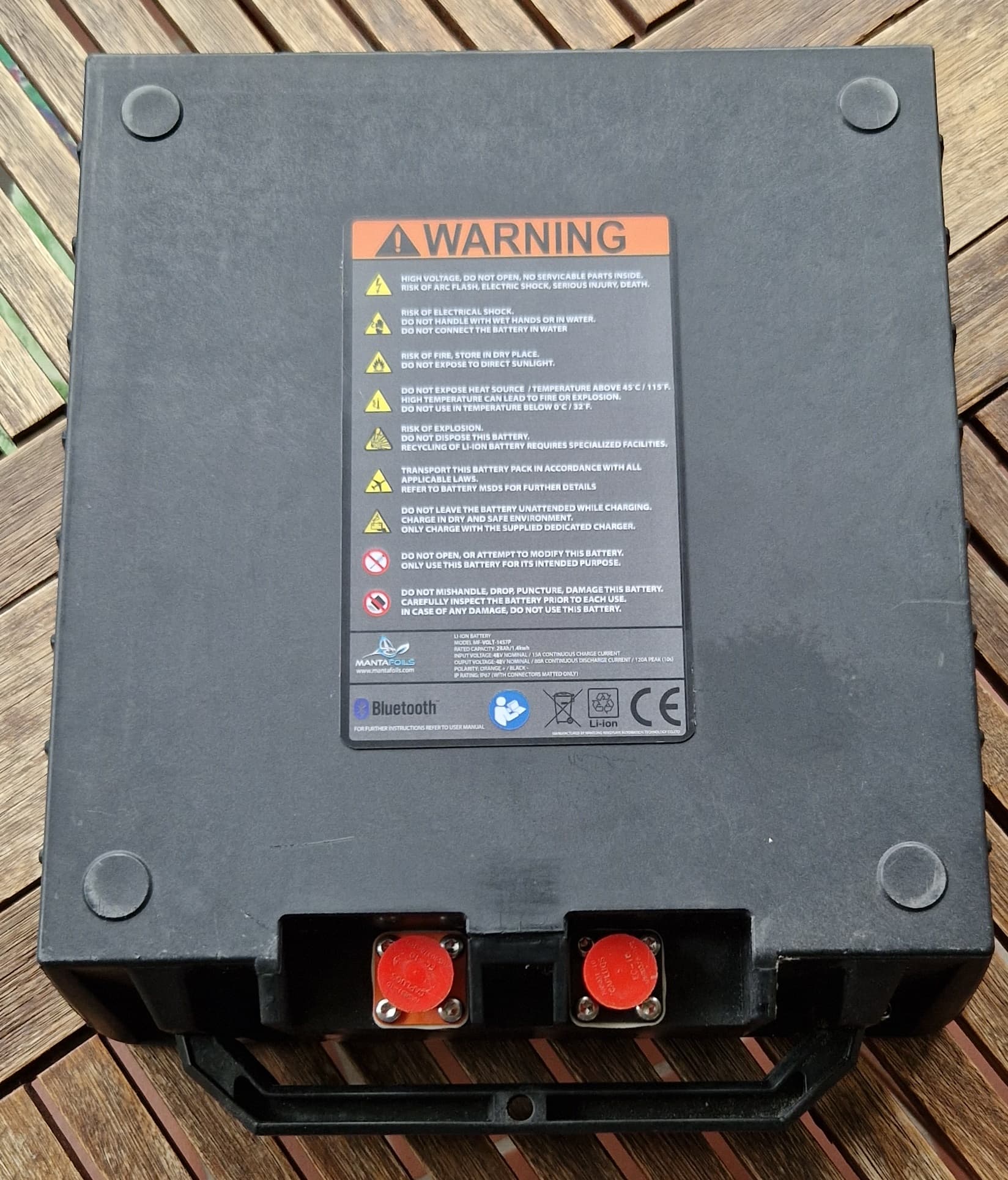 - Battery: Original MantaFoils 50 Ah pack — high range. Charger included.