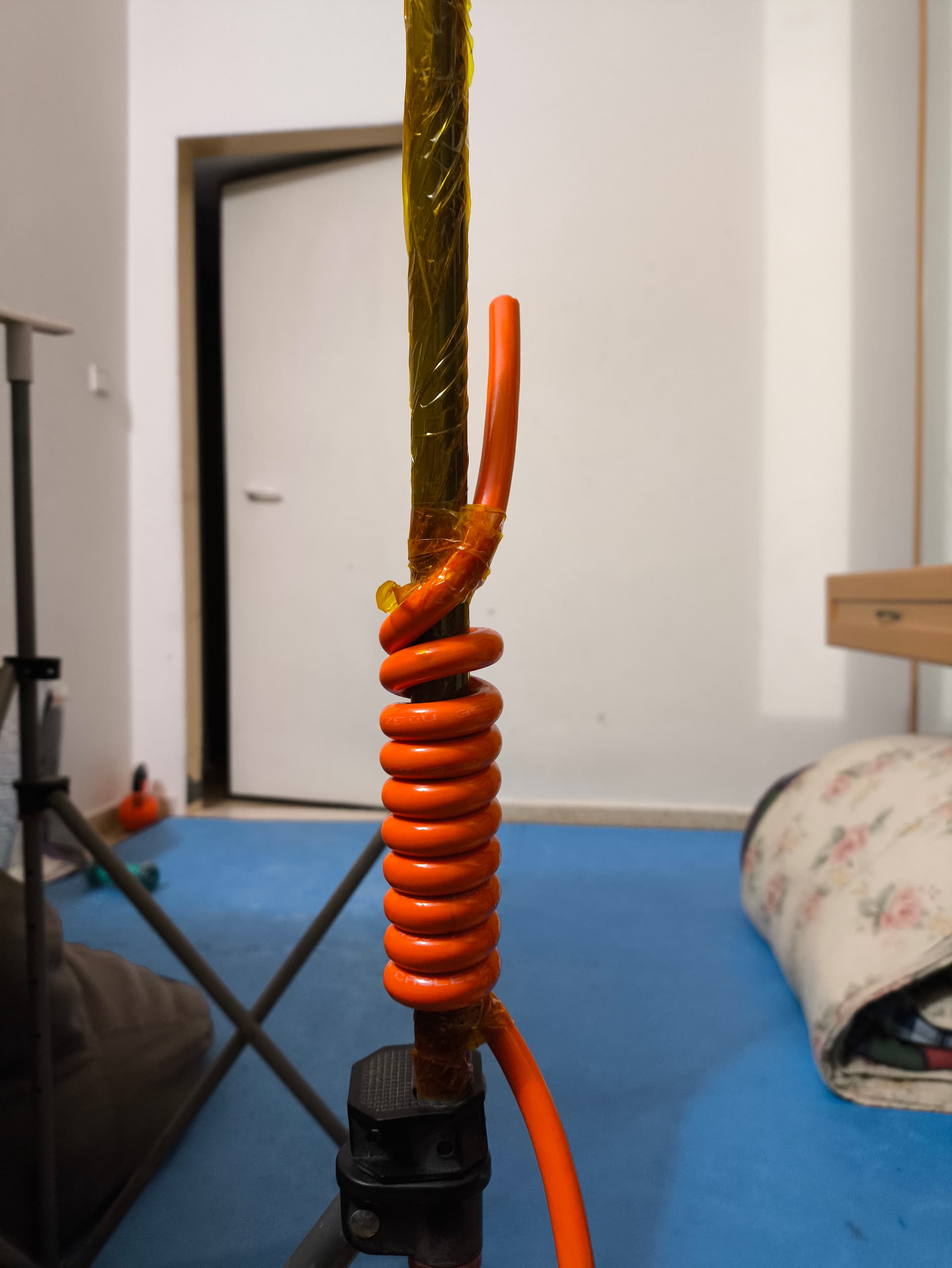 I heated a few minutes with a heat gun at 300c swiveled on this thin rode, doing passes up down and around.