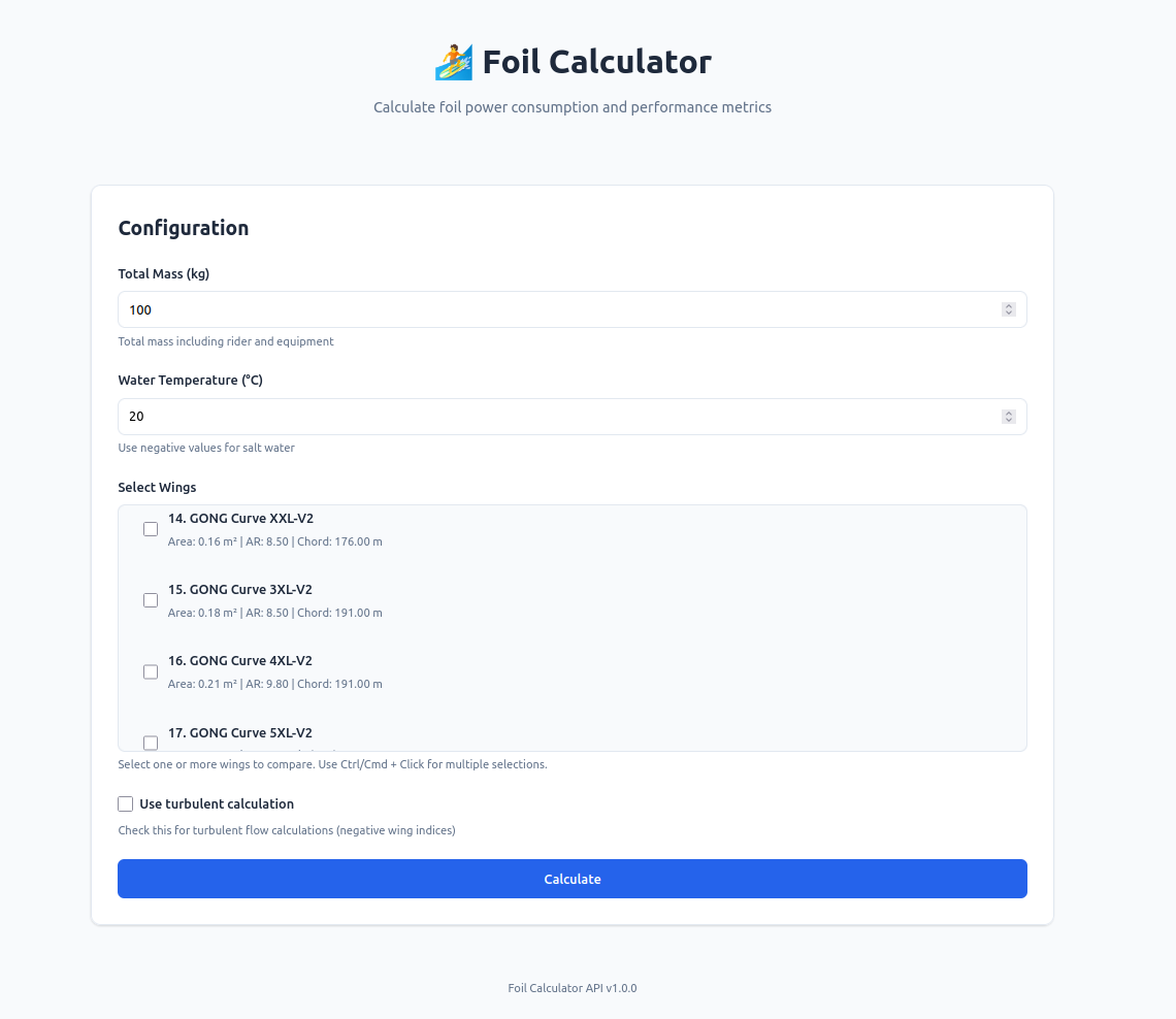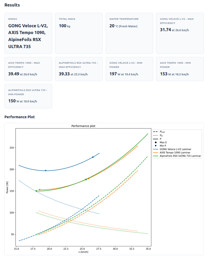 My tool is much more simple, it takes in account the Planform (Surface area, AR, e and thickness) and the conditions (total weight, water temperature, Laminar/Turbulent ) then it gives a drag prediction by interpolating in a database of xflr5 results.