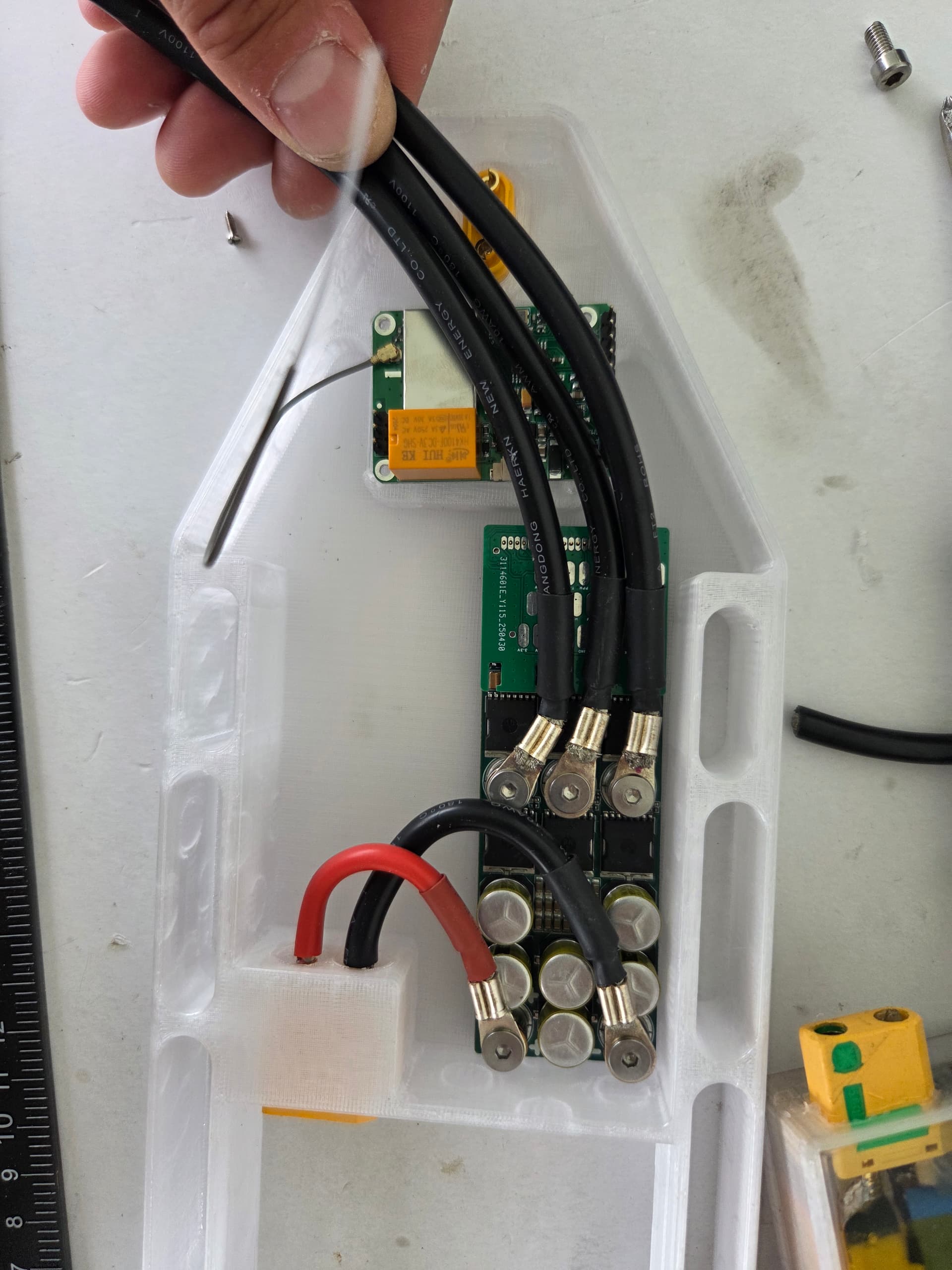 Next I have to prepare signal wiring and make it clean, then I can test it all before installation in the alu part. I will aslo design a part to hold the electronics and wires all together and reduce potting volume and weight where possible.