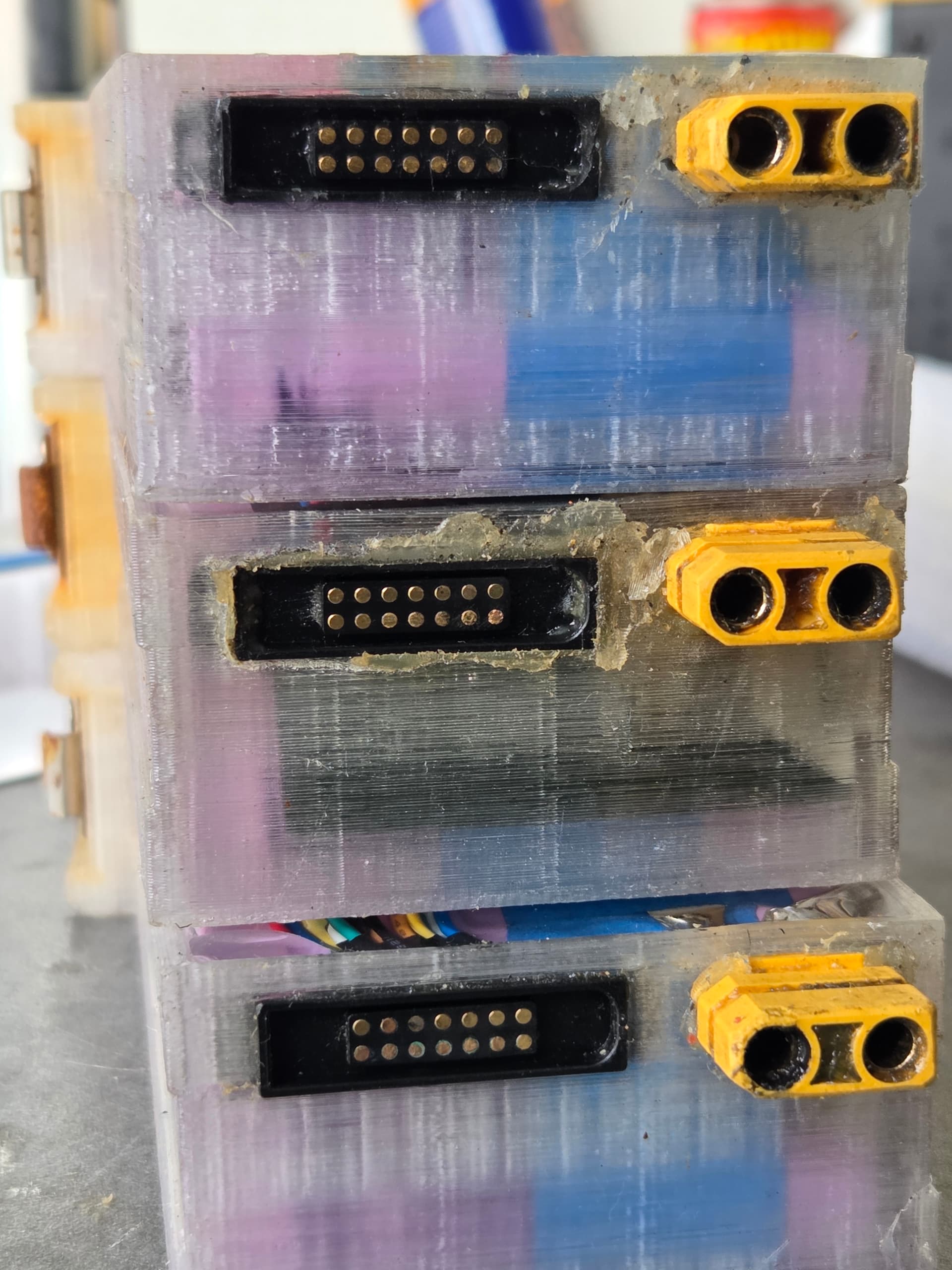 Just a head up, XT90S plugs are thought, so during potting, make sure they are fully soldered, or that you added some sealing inside to prevent epoxy weeping from the connector.