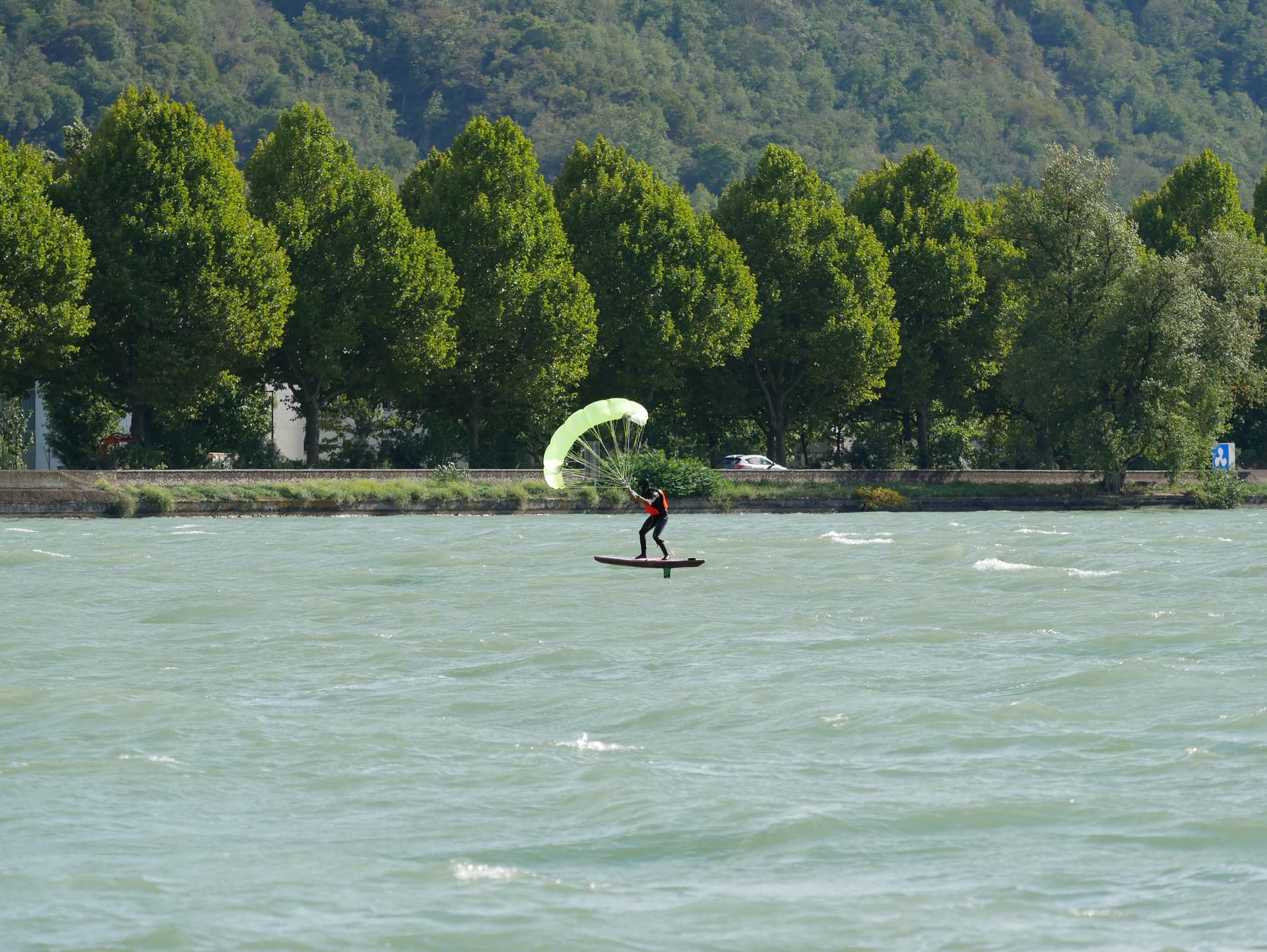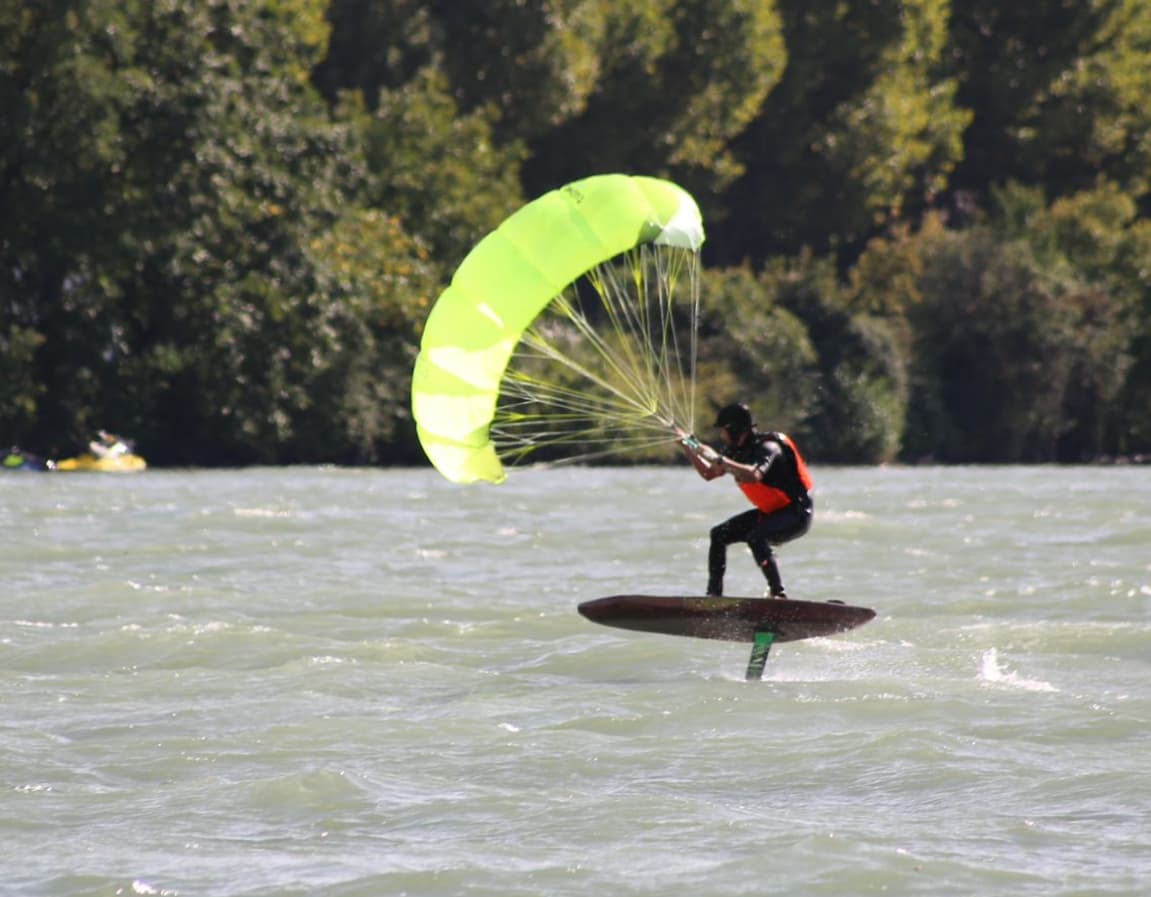 V1 3m with 6 added nitinol ribs that keep it from total collapse when riding the front lines. My friend with the paddle in the photos has the v2 4m, should be able to test it sometime soon. Had a few good sessions on the harness and 1050 foil, but still having trouble in my switched stance.