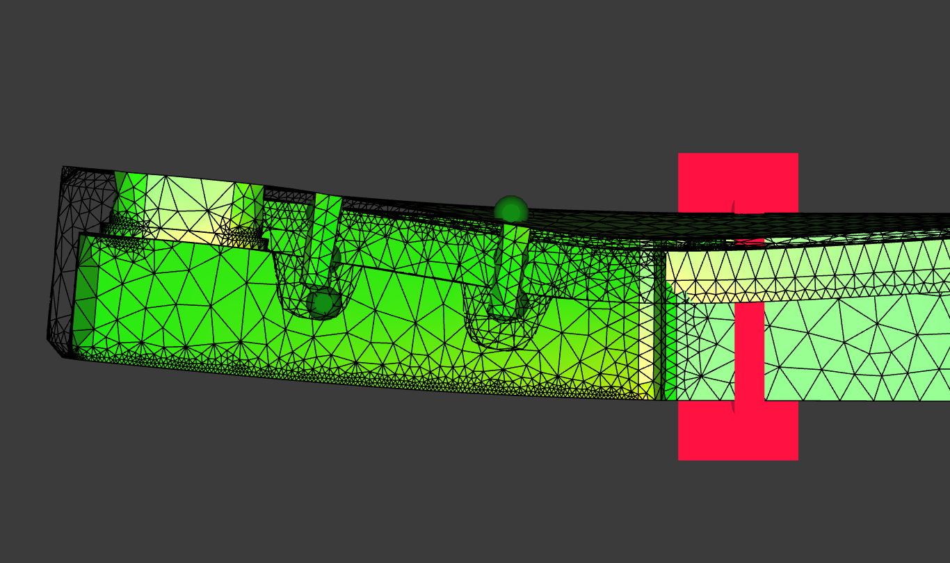 Max 115 MPA on the top of the internal rib, it is doing its job but could be higher. Fatigue strength for most alus is around 80 MPA to be on the safe side.
