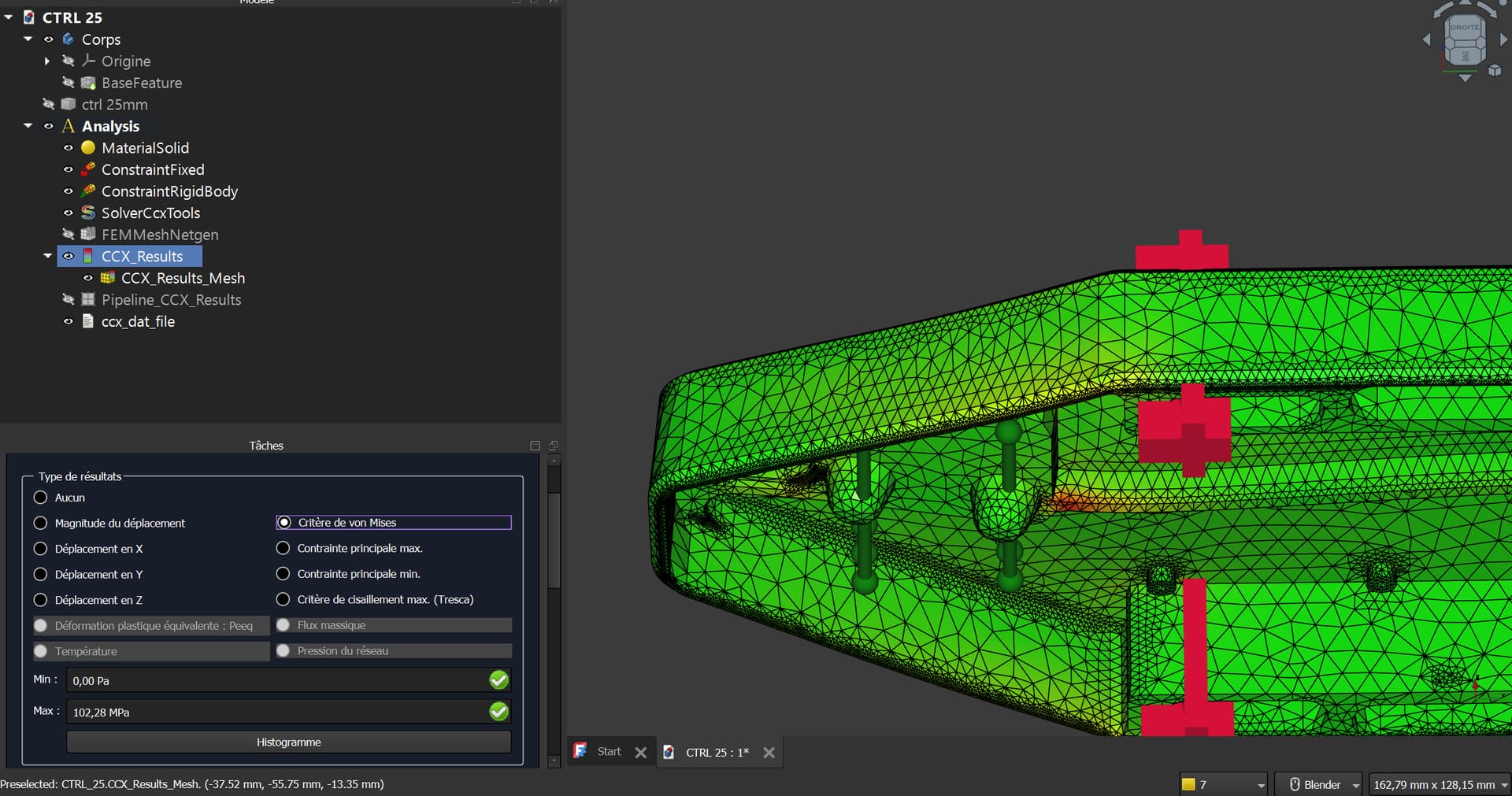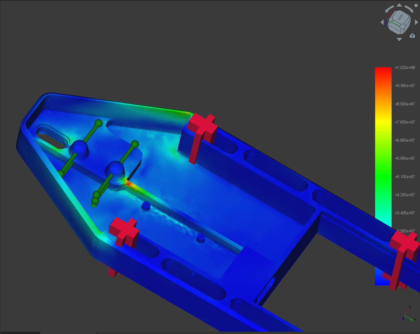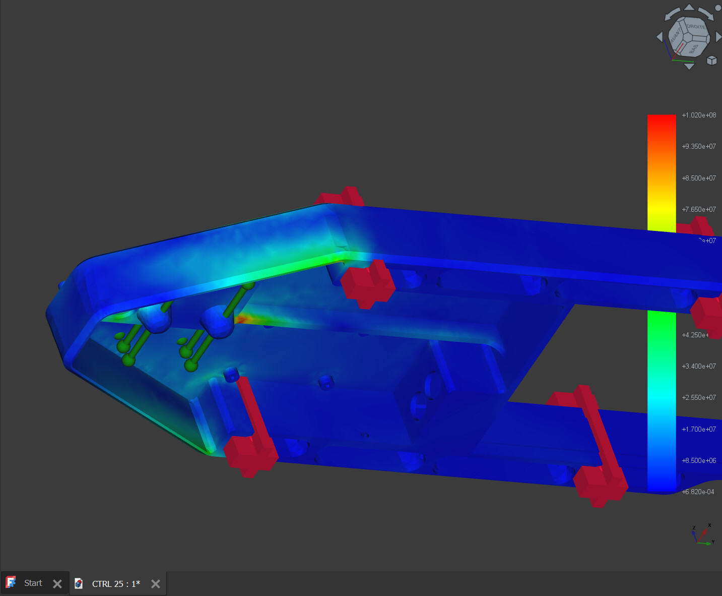 Some calculations in freecad to check for weak spots @50kgf motor thrust