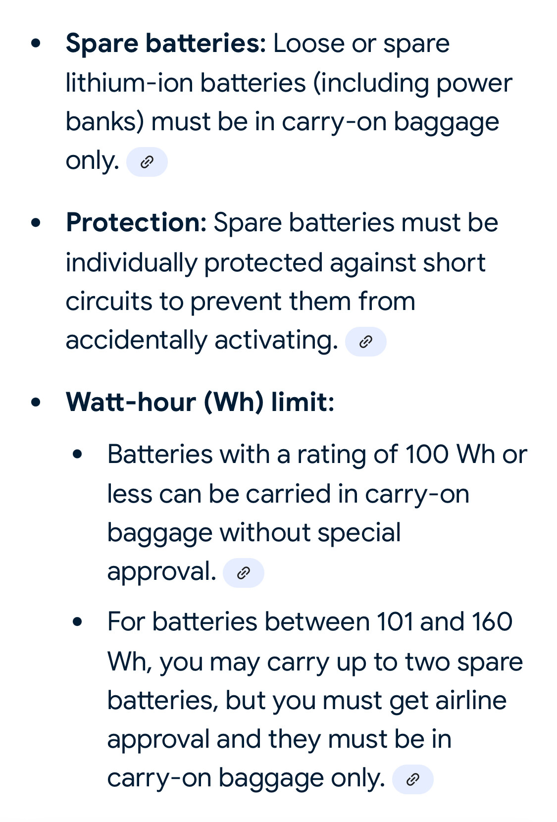 Seems like the 100 - 160 Wh is where it can go wrong with airlines. Approval on the way but not on the way back etc etc. Single cells a great concept imo.