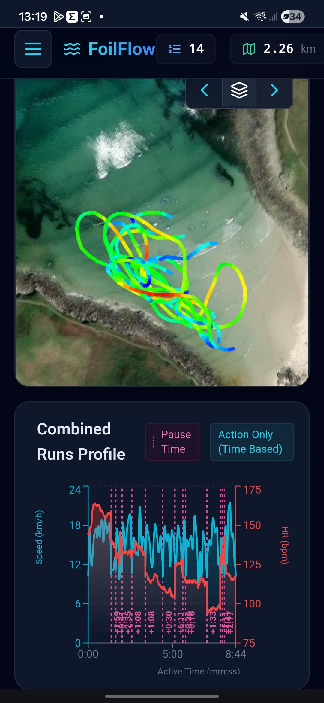 It is quite hard to be efficient upwind in the chop , for ex in this session, With wind and high motor, I could not stand up and upwind, only laying up or kneeling on board.
