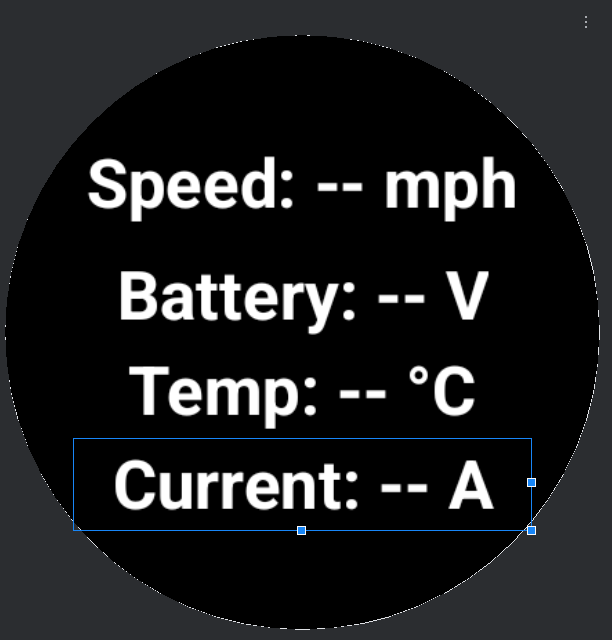 The “speed”, “battery”, “temp”, and “current” text actually go away after it connects to the VESC. The font text size remains the same though because of the limitations of the watch face size.
