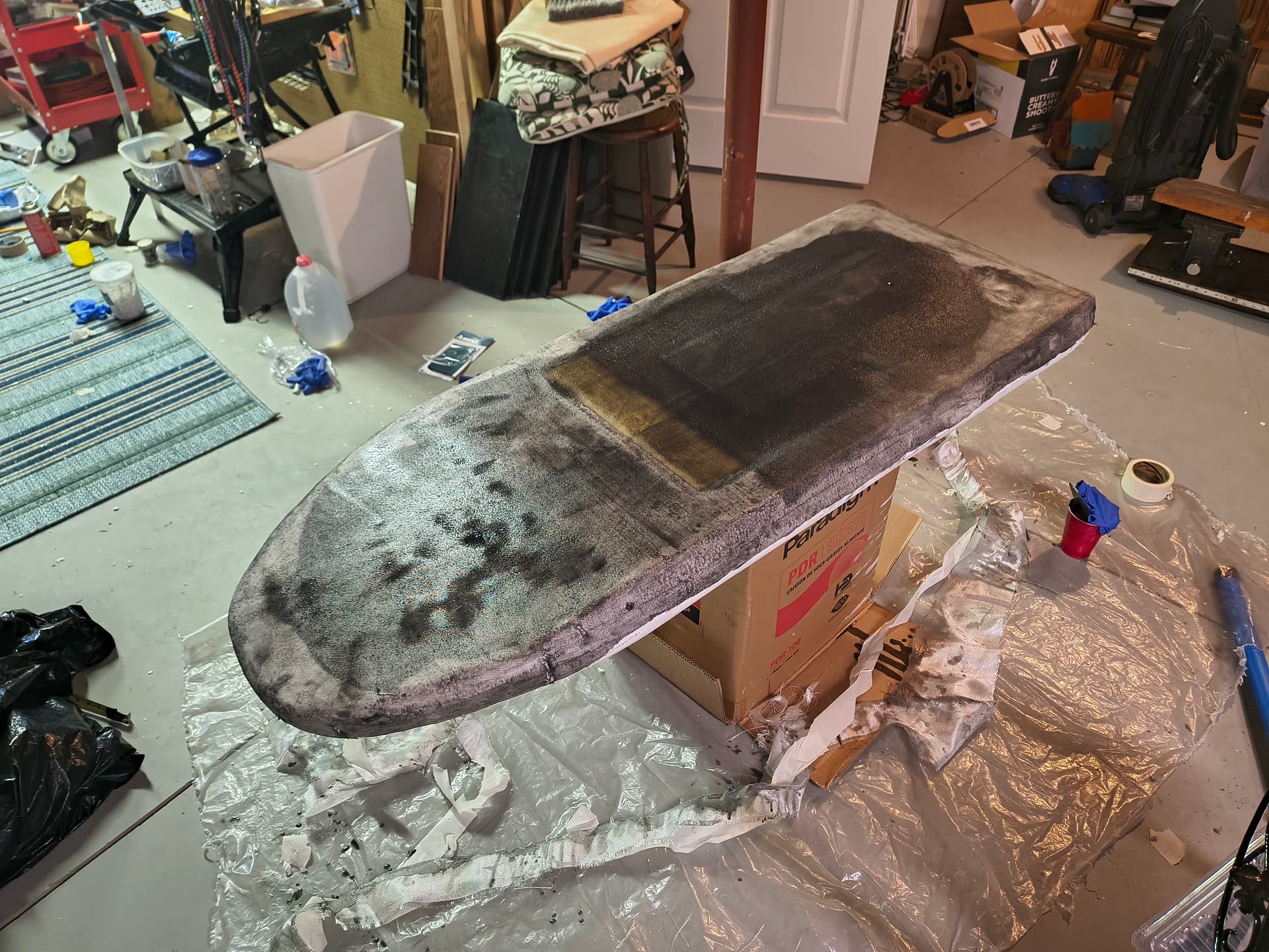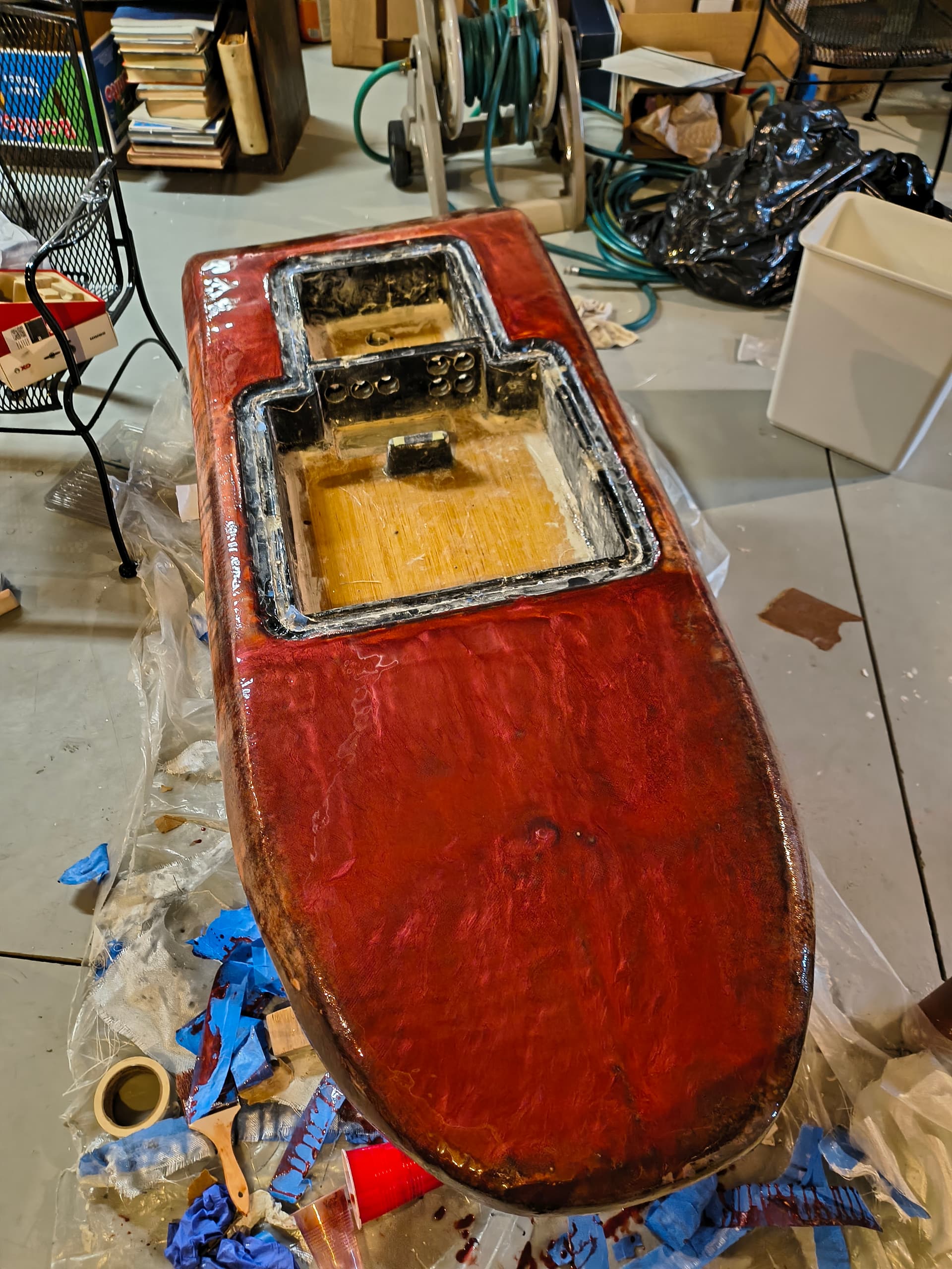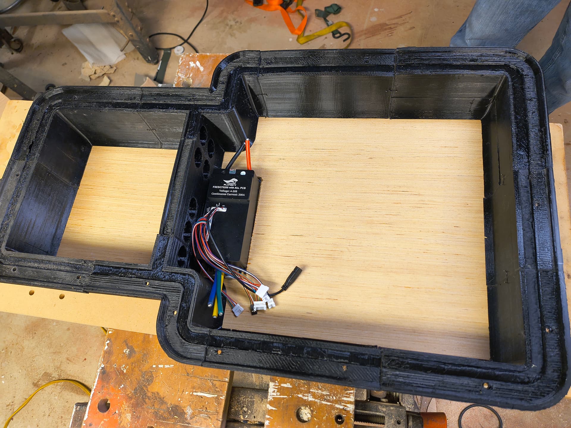 I know its been a while since i posted to the forum, these boards are a lot of work! I finally got around to glassing and putting in my electronics box into my board. I 3d printed the electronics box in a lot of pieces and then fiber glassed it together with a wood bottom. The foil mount was under it and was glued to the foam and electronics enclosure. I used a 8x24x1/4 inch piece of aluminum for the mount. We’ll see how it holds up! I put 3 layers of 6 ounce fiberglass under it for strength. The board is hot coated and ready to make a lid for it!