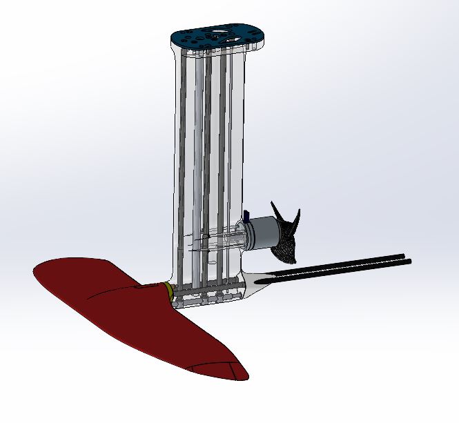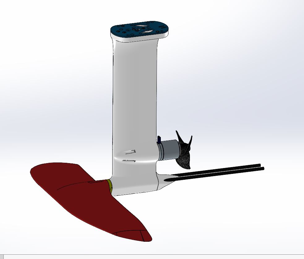 I designed the mast and the wing so they can be 3D‑printed. The fuselage will be integrated into both the mast and the wing. The wing is around 1300 cm², but my 3D model is scalable, so I can still change my mind and increase the surface if needed. The mast is only 55 cm long because I already have some 55 cm carbon tubes in stock.