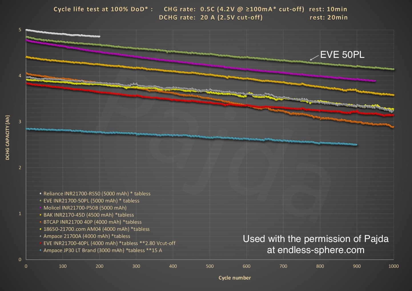 Why the EVE’s? There’s been an insane amount of critic on the cells on Facebook forum. I’ve had a. Arch too which discharged itself to 0 within a few months, luckily I was able to return them. Got the Reliance RS50’s instead.