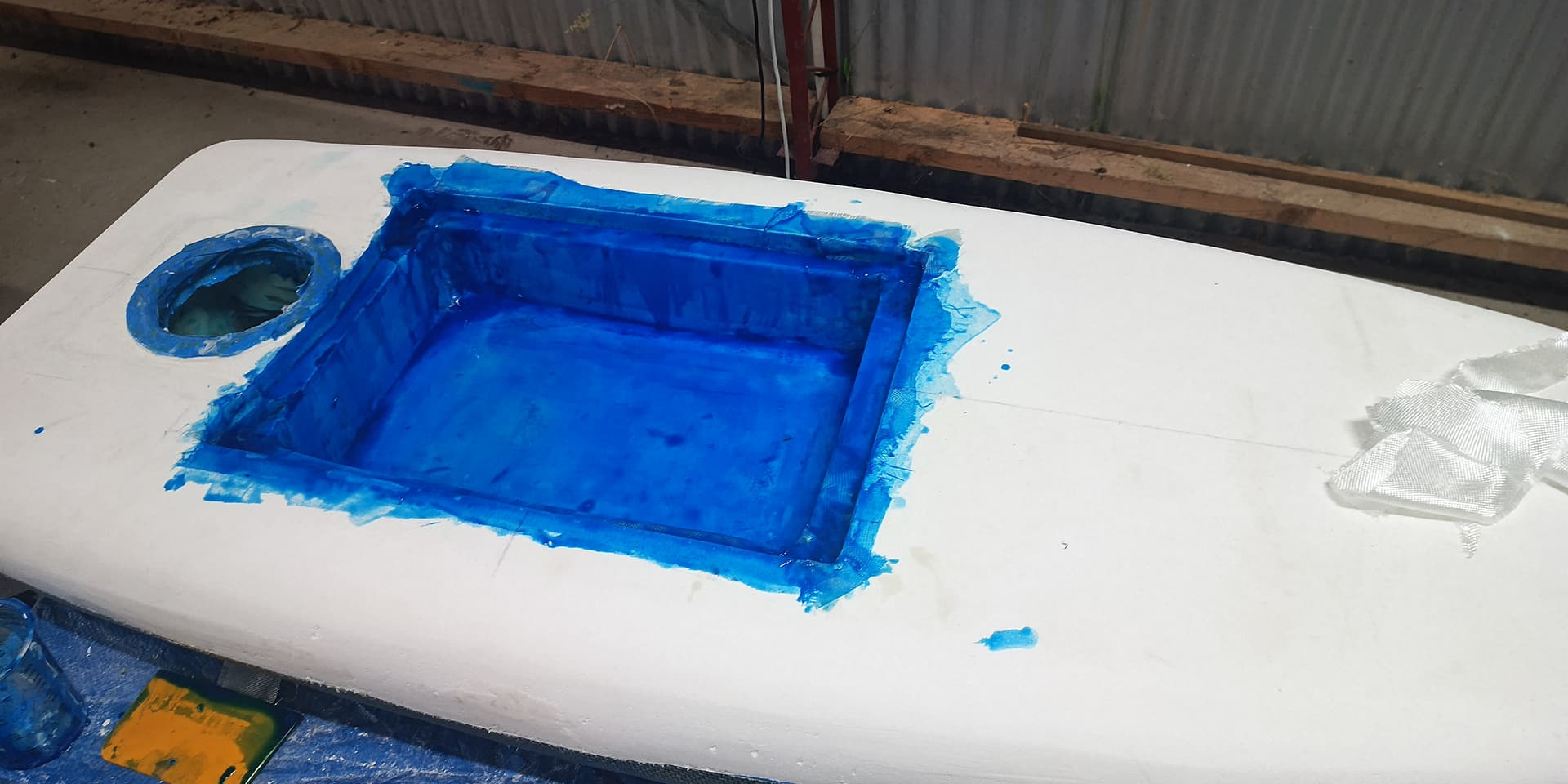 Glassed hatch in first used super 77 contact adhesive to make the corners sharp