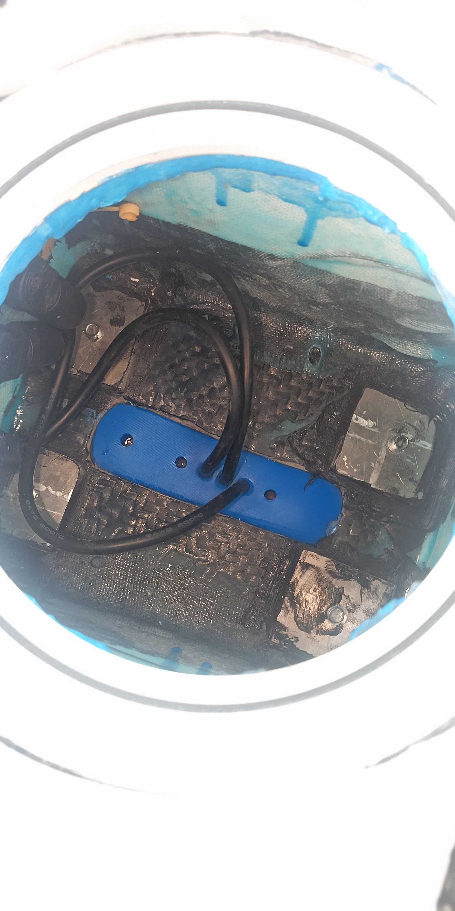 The mast is mounted with M8 screws threaded into 8 mm of aluminum plate. It’s waterproofed with M8 rubber washers and a custom Moldstar seal. The washers are being over compressed and are currently leaking, so that’s still a work in progress.