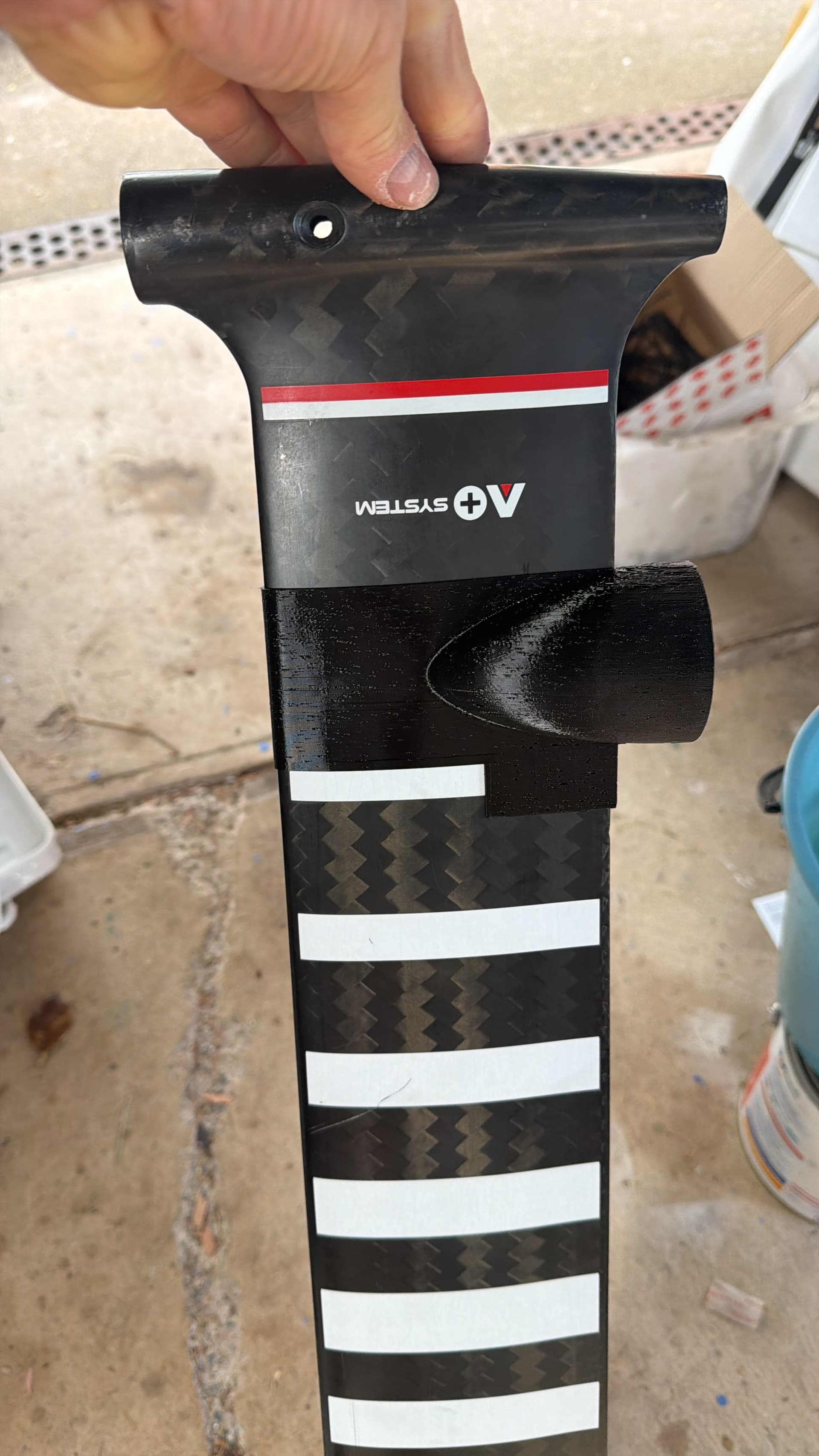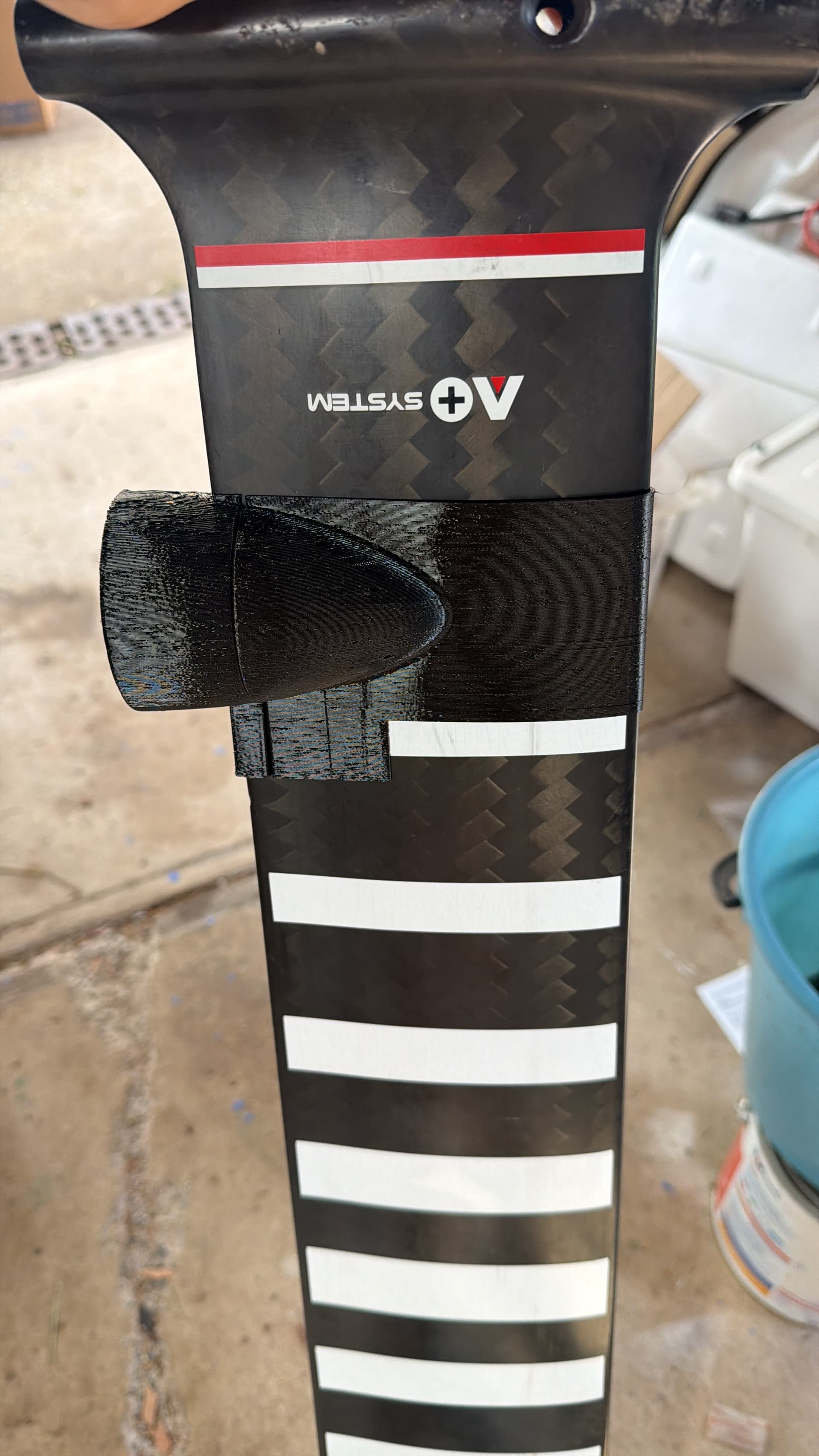 A few people have printed it so far, works pretty good, simple, and i think as close to integrated as you can get. Not designed for quick on and off like the strap, but with tape etc i dont think many people are doing that. Works with any mast, I just need the chord length to generate the file.
