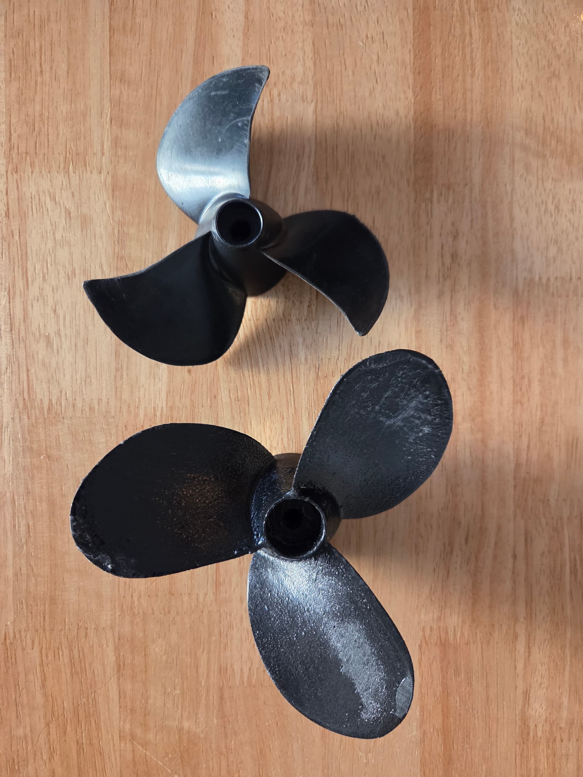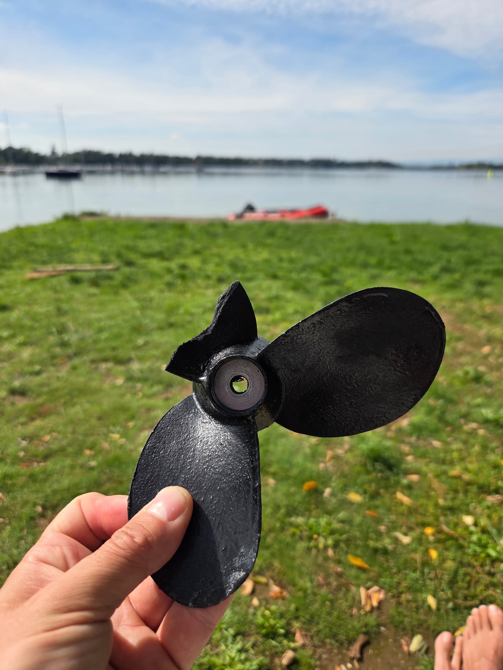 Preparing a bigger prop to go higher power than the flite. Goal is to get on plane with my wife and kid aboard, and be able to tow a foiler while in the boat.