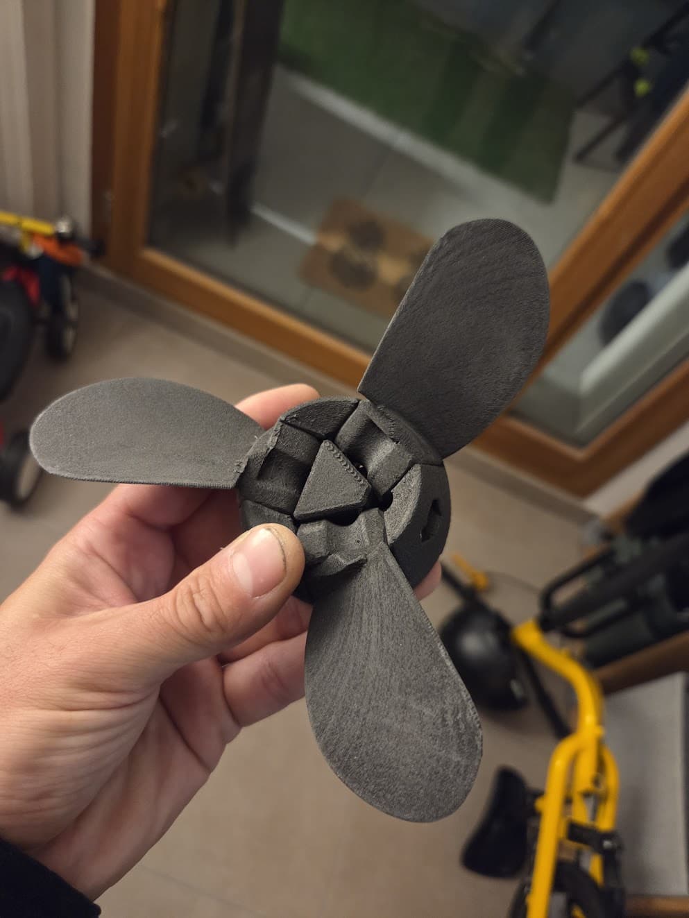 The folable prop has just some sanding, the fixed prop had a coat of epoxy on it, but it was not sufficant and exploded on the first full throttle run ^^