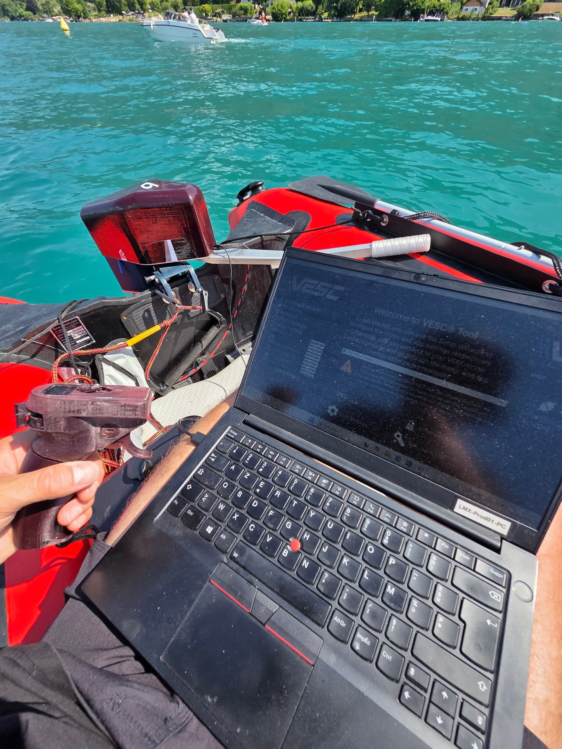 Nice and fun boat ride, towing my wife on the paddle, enjoy the lake with the tiller installed while I wait for the servo replacement, but still burned 3kwh of battery just cruising along at 8kph.